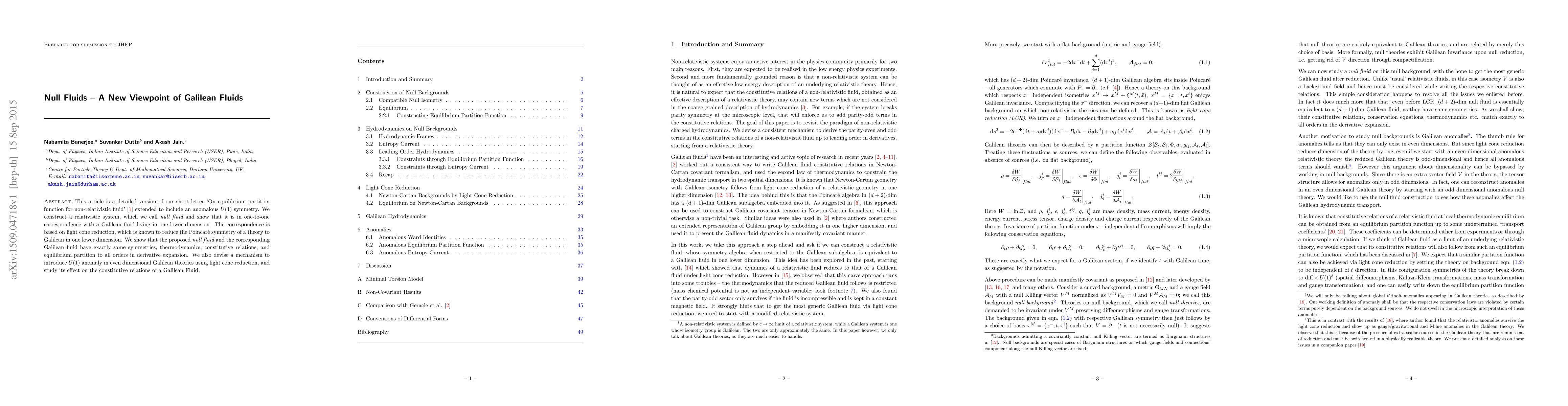 This paper constructs a relativistic "null fluid" system that corresponds to a Galilean fluid in one lower dimension, demonstrating identical symmetries and thermodynamic properties. It also introduces a $U(1)$ anomaly mechanism in even-dimensional Galilean theories, affecting their constitutive relations.
