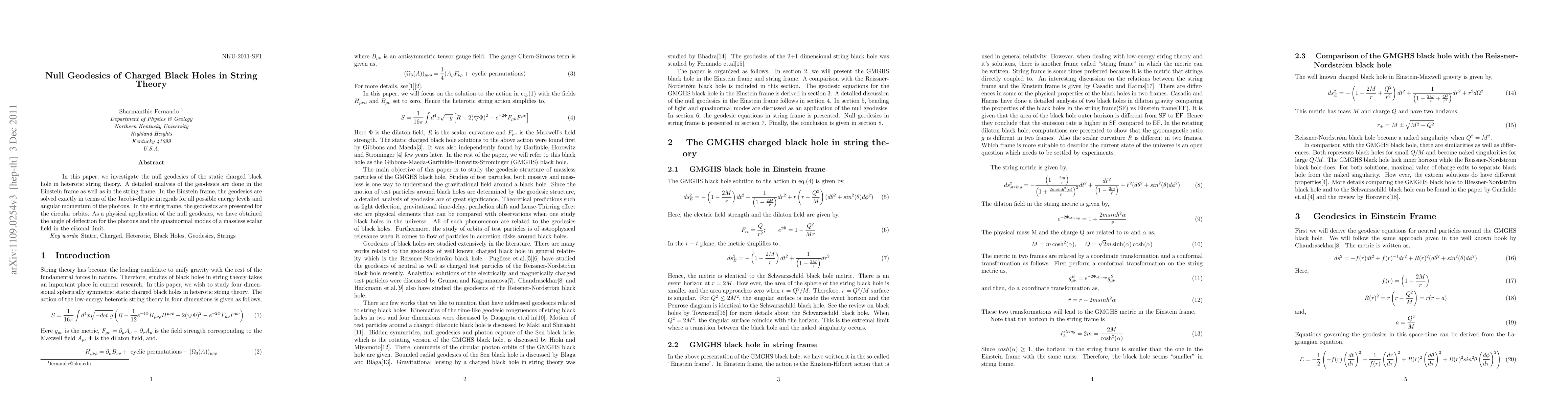 This paper examines the null geodesics of static charged black holes in heterotic string theory, solving them exactly in the Einstein frame and presenting circular orbit solutions in the string frame. It also determines the angle of deflection for photons and the quasinormal modes of a massless scalar field.