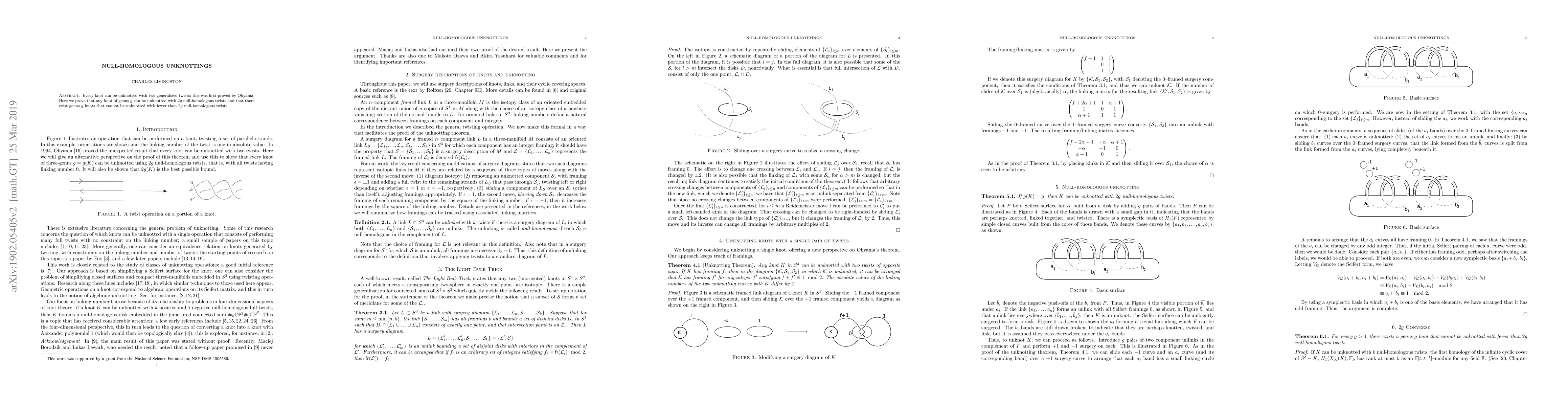 Every knot can be unknotted with two generalized twists; this was first proved by Ohyama. Here we prove that any knot of genus g can be unknotted with 2g null-homologous twists and that there exist genus g knots that cannot be unknotted with fewer than 2g null-homologous twists.