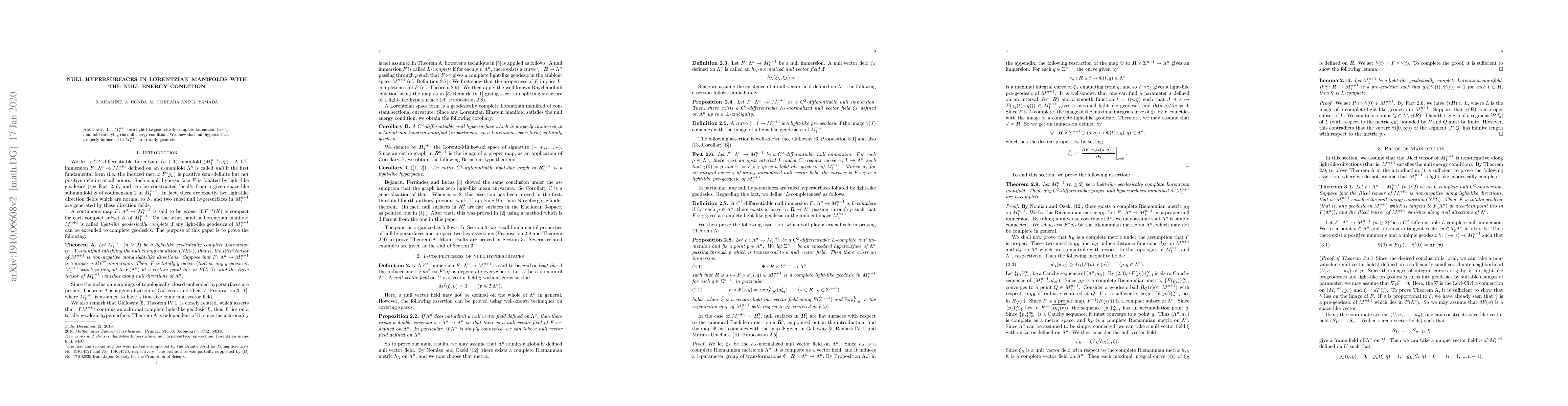 Summary: This paper demonstrates that null hypersurfaces in a light-like, geodesically complete Lorentzian manifold satisfying the null energy condition are totally geodesic. The result highlights the geometric properties of such hypersurfaces within the specified manifold.