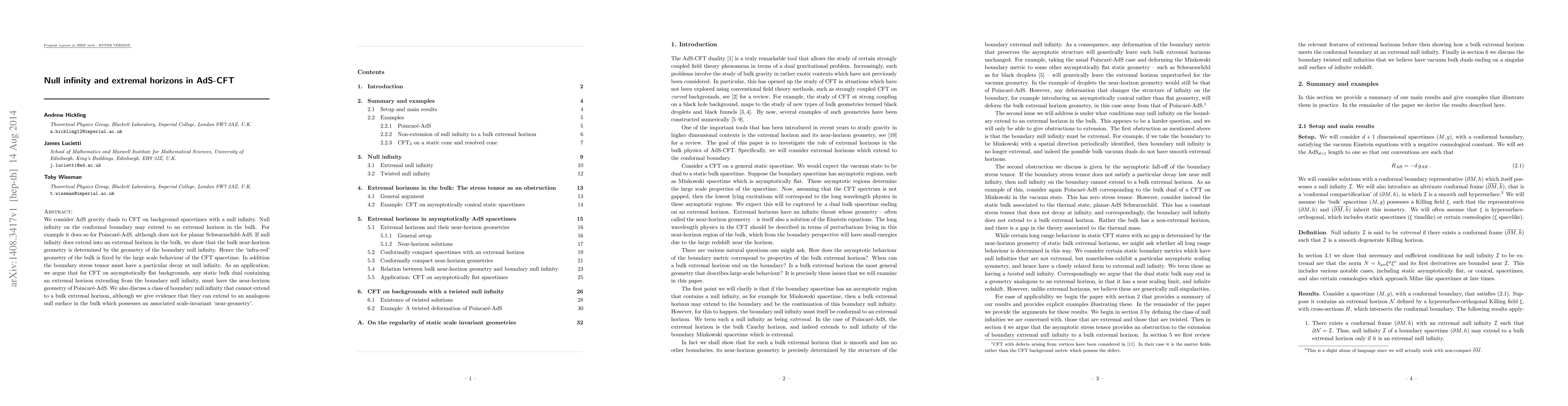 We consider AdS gravity duals to CFT on background spacetimes with a null infinity. Null infinity on the conformal boundary may extend to an extremal horizon in the bulk. For example it does so for Poincare-AdS, although does not for planar Schwarzschild-AdS. If null infinity does extend into an extremal horizon in the bulk, we show that the bulk near-horizon geometry is determined by the geometry of the boundary null infinity. Hence the `infra-red' geometry of the bulk is fixed by the large scale behaviour of the CFT spacetime. In addition the boundary stress tensor must have a particular decay at null infinity. As an application, we argue that for CFT on asymptotically flat backgrounds, any static bulk dual containing an extremal horizon extending from the boundary null infinity, must have the near-horizon geometry of Poincare-AdS. We also discuss a class of boundary null infinity that cannot extend to a bulk extremal horizon, although we give evidence that they can extend to an analogous null surface in the bulk which possesses an associated scale-invariant `near-geometry'.