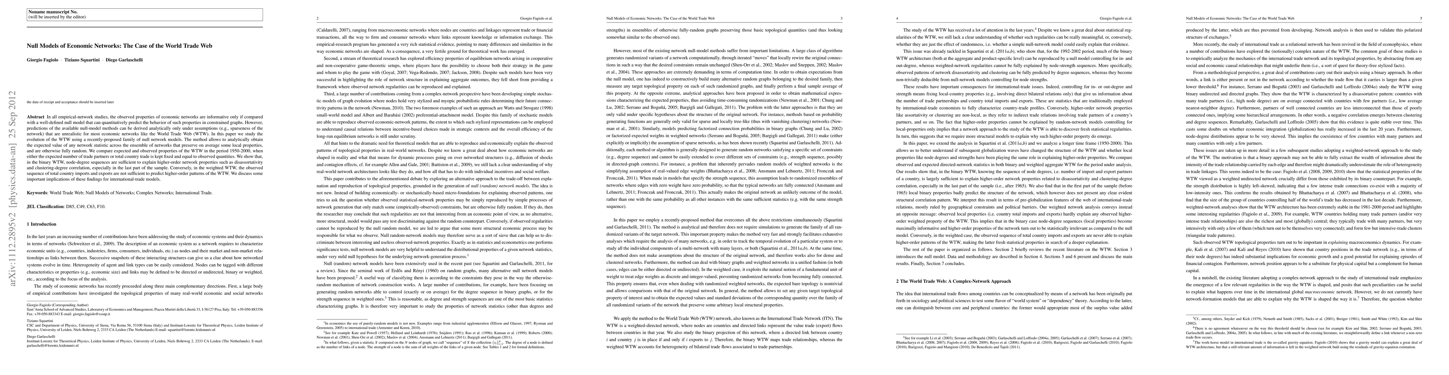 This paper examines the World Trade Web (WTW) using advanced null models to compare observed network properties against expected values in random networks that maintain average local properties. It finds that node-degree sequences in the binary WTW explain higher-order properties, but total trade sequences in the weighted WTW do not, highlighting implications for international trade models.