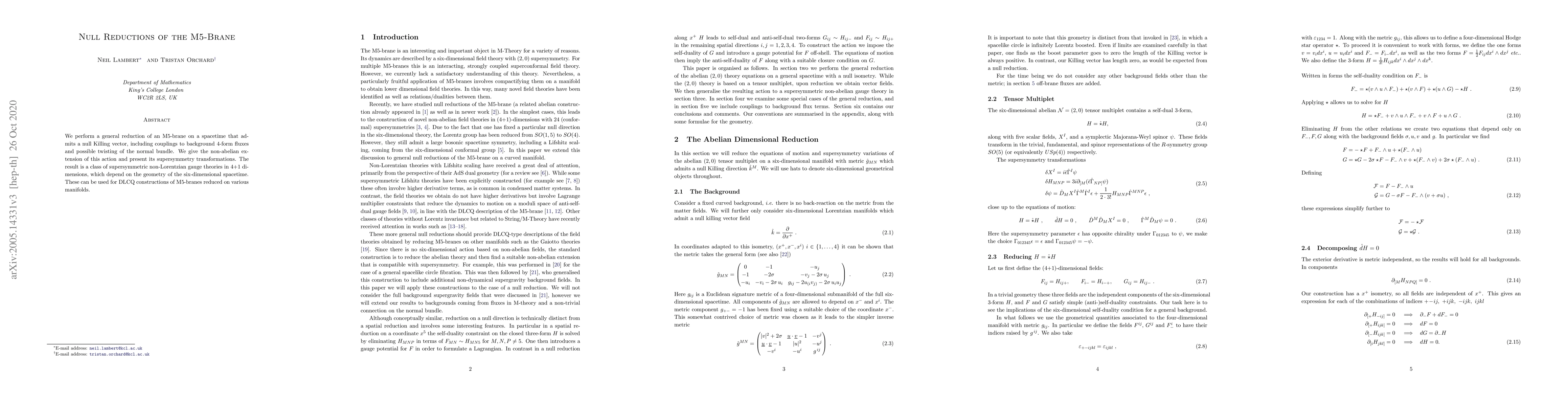 The paper presents a detailed analysis of M5-brane reductions, including non-abelian extensions and supersymmetry transformations, in a non-Lorentzian setting, providing a systematic approach to understanding such theories.