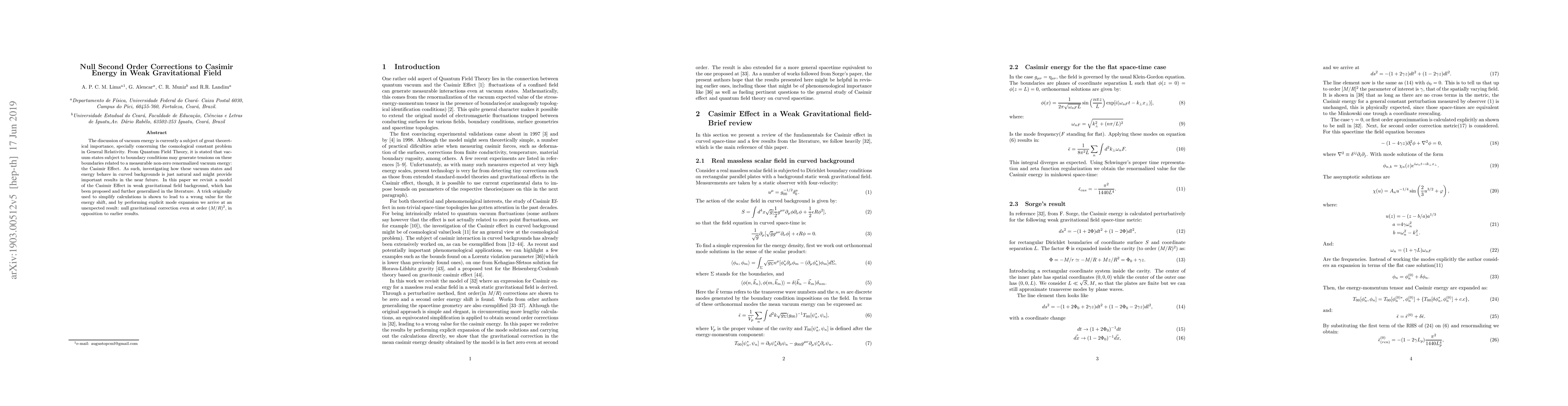 The discussion of vacuum energy is currently a subject of great theoretical importance, specially concerning the cosmological constant problem in General Relativity. From Quantum Field Theory, it is stated that vacuum states subject to boundary conditions may generate tensions on these boundaries related to a measurable non-zero renormalized vacuum energy: the Casimir Effect. As such, investigating how these vacuum states and energy behave in curved backgrounds is just natural and might provide important results in the near future. In this paper we revisit a model of the Casimir Effect in weak gravitational field background, which has been proposed and further generalized in the literature. A trick originally used to simplify calculations is shown to lead to a wrong value for the energy shift, and by performing explicit mode expansion we arrive at an unexpected result: null gravitational correction even at order $(M/R)^2$, in opposition to earlier results.