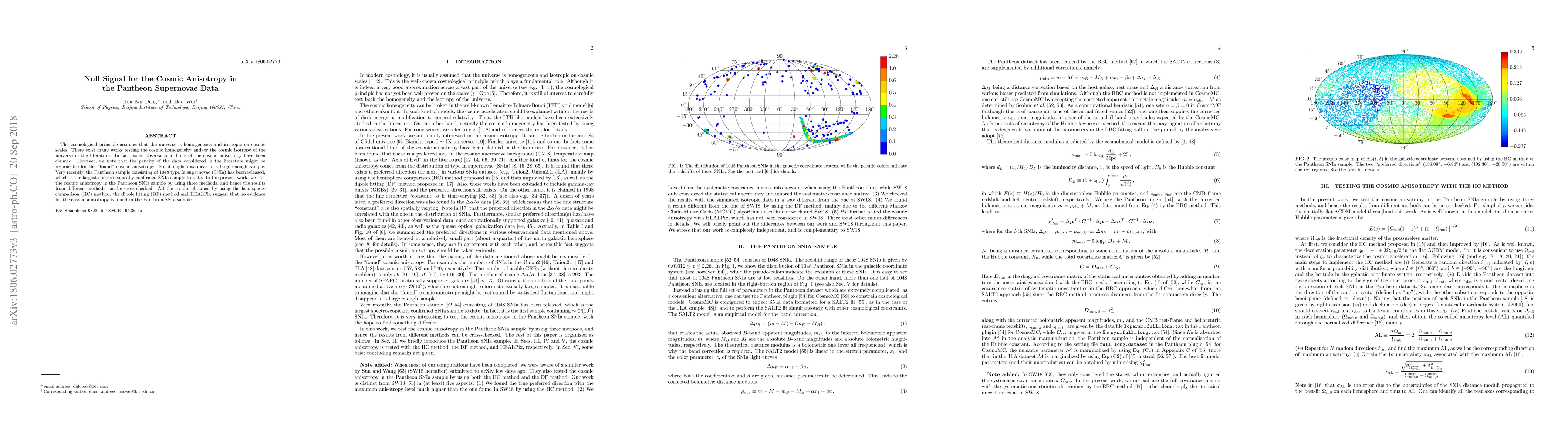 The study using the Pantheon sample of 1048 type Ia supernovae finds no evidence for cosmic anisotropy through three different methods, suggesting that previous claims of anisotropy may have been due to insufficient data. This large dataset supports the cosmological principle of homogeneity and isotropy.
