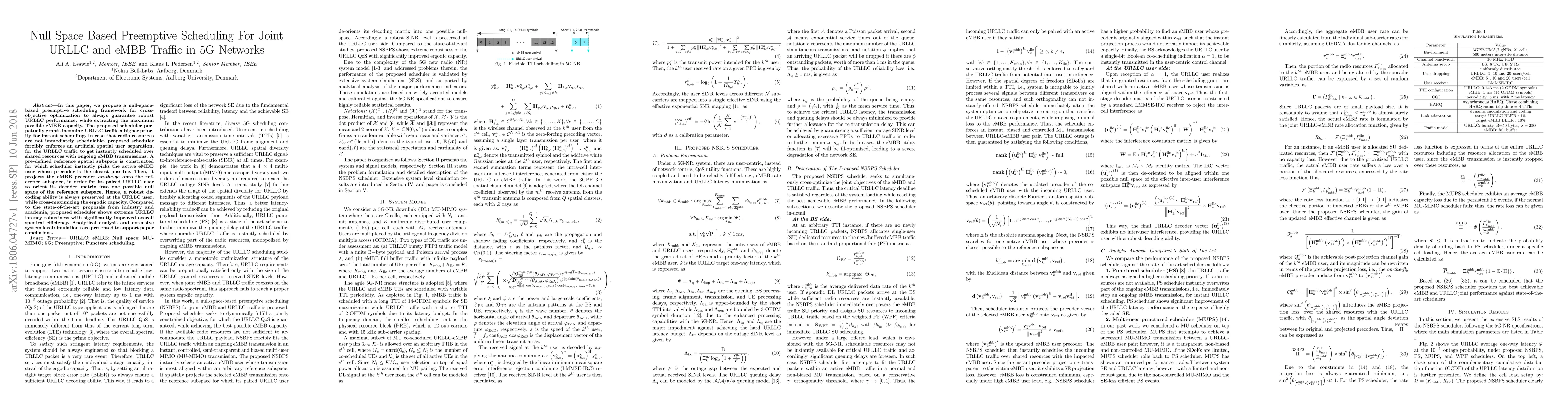 This paper proposes a null-space-based preemptive scheduling framework to optimize 5G networks for both URLLC and eMBB traffic, ensuring robust URLLC performance while maximizing eMBB capacity. The scheduler prioritizes URLLC traffic and enforces spatial user separation when necessary to maintain URLLC scheduling, achieving superior latency and spectral efficiency compared to existing methods.
