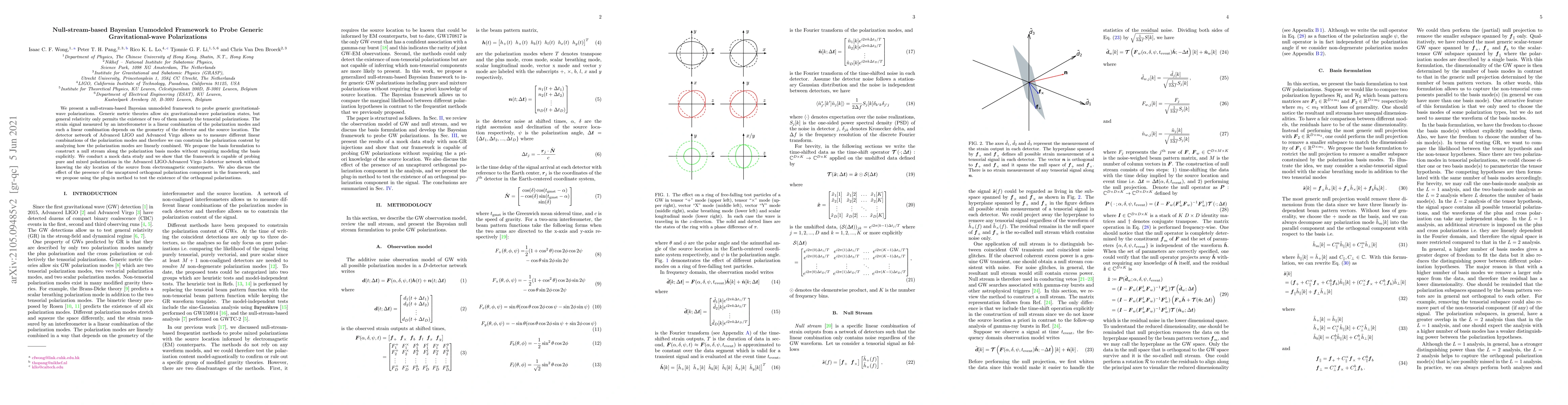 This paper introduces a null-stream-based Bayesian framework to detect generic gravitational-wave polarizations beyond those in general relativity, using data from Advanced LIGO and Virgo. The proposed method can probe both pure and mixed polarization states without requiring explicit modeling of the polarization basis.