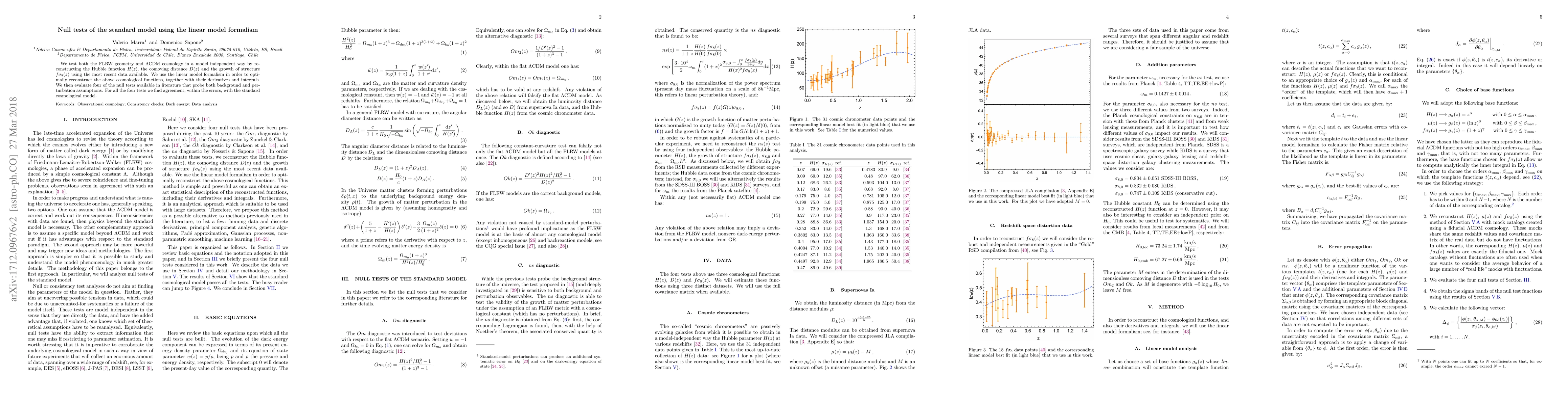 This paper tests the FLRW geometry and $\Lambda$CDM cosmology using the latest data to reconstruct the Hubble function, comoving distance, and growth of structure via the linear model formalism. It finds agreement within errors for four null tests with the standard cosmological model.