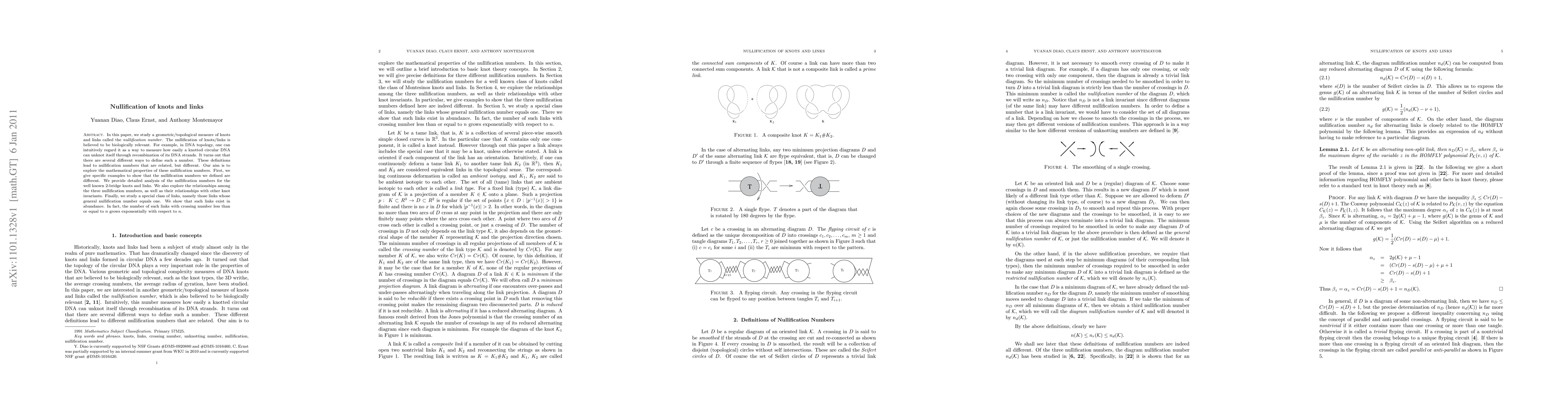 In this paper, we study a geometric/topological measure of knots and links called the nullification number. The nullification of knots/links is believed to be biologically relevant. For example, in DNA topology, one can intuitively regard it as a way to measure how easily a knotted circular DNA can unknot itself through recombination of its DNA strands. It turns out that there are several different ways to define such a number. These definitions lead to nullification numbers that are related, but different. Our aim is to explore the mathematical properties of these nullification numbers. First, we give specific examples to show that the nullification numbers we defined are different. We provide detailed analysis of the nullification numbers for the well known 2-bridge knots and links. We also explore the relationships among the three nullification numbers, as well as their relationships with other knot invariants. Finally, we study a special class of links, namely those links whose general nullification number equals one. We show that such links exist in abundance. In fact, the number of such links with crossing number less than or equal to n grows exponentially with respect to n.