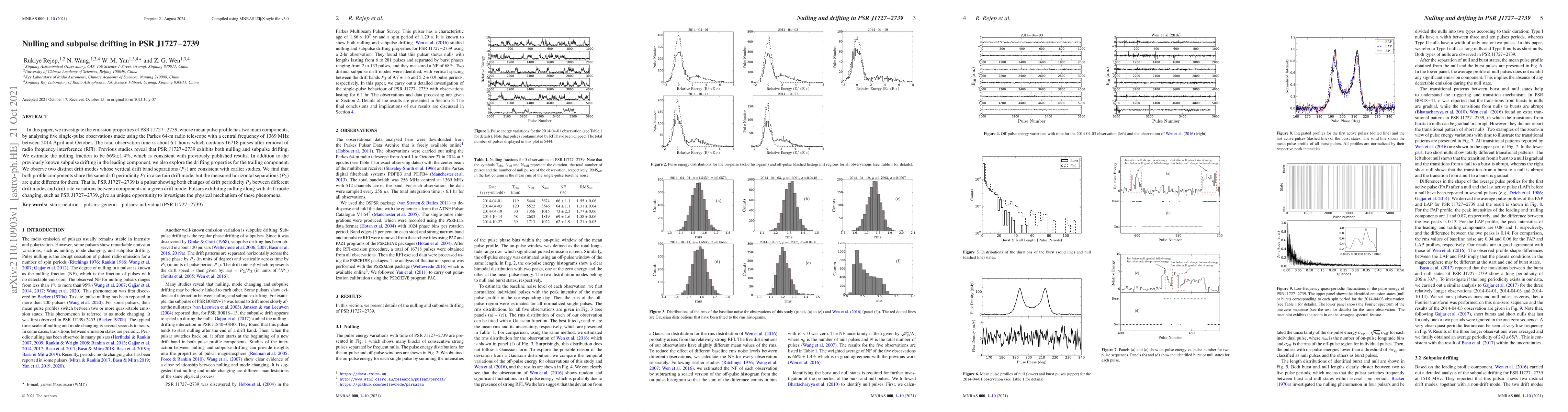 This paper analyzes the emission properties of PSR J1727-2739, finding a 66% nulling fraction and identifying two distinct drift modes in its pulse profile components. Both components share the same drift periodicity in one mode but differ in horizontal separation, highlighting unique characteristics in pulsar nulling and subpulse drifting.