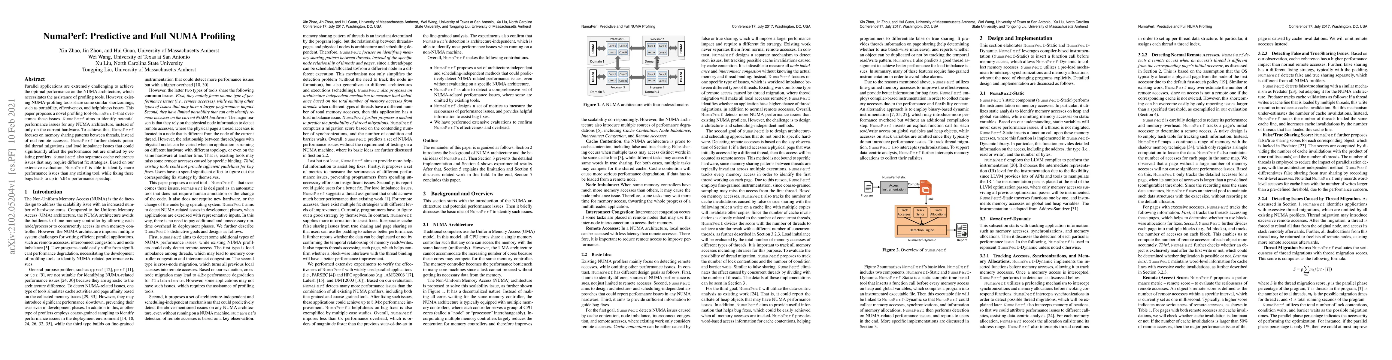 NumaPerf is a novel profiling tool designed to identify performance issues in parallel applications on NUMA architectures by focusing on memory sharing patterns and detecting thread migrations and load imbalances. It outperforms existing tools by providing more effective and portable profiling, leading to significant performance improvements.