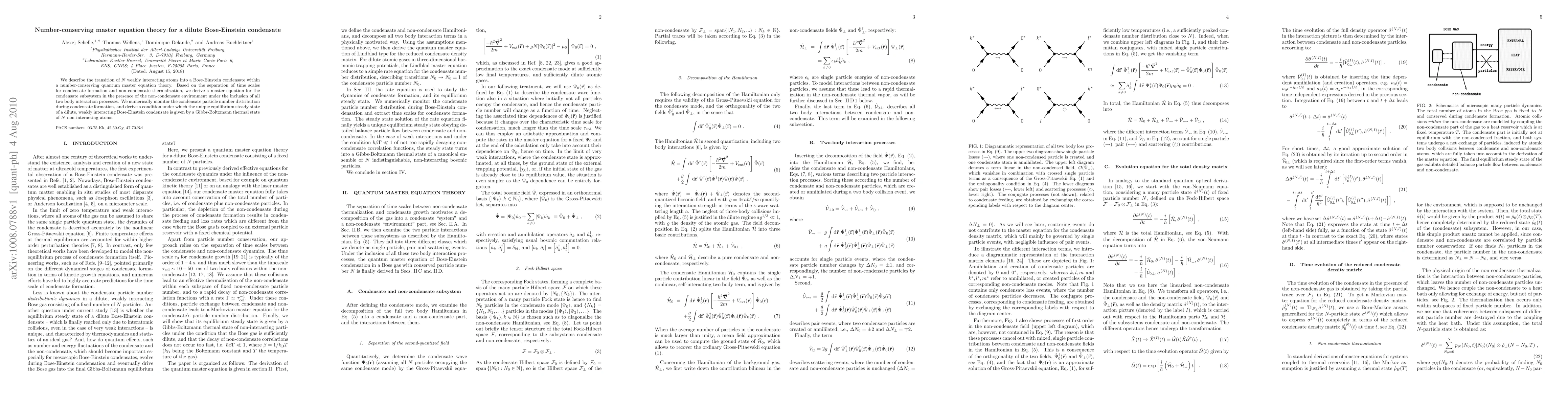 The paper presents a number-conserving quantum master equation theory for Bose-Einstein condensation, providing a detailed derivation and numerical analysis of the condensate formation process.