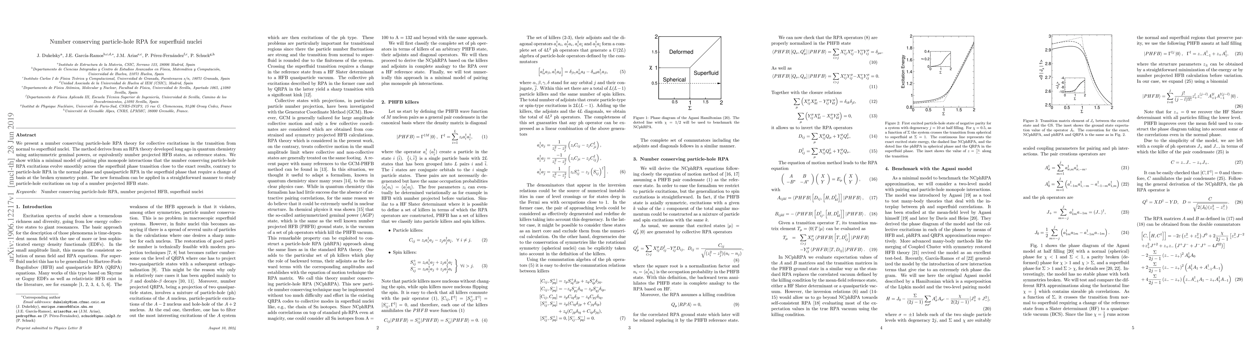 This paper introduces a new number conserving particle-hole RPA theory for collective excitations in superfluid nuclei, demonstrating its smooth evolution across the superfluid phase transition. Unlike traditional RPA methods, this approach avoids the need for a basis change at the symmetry breaking point.