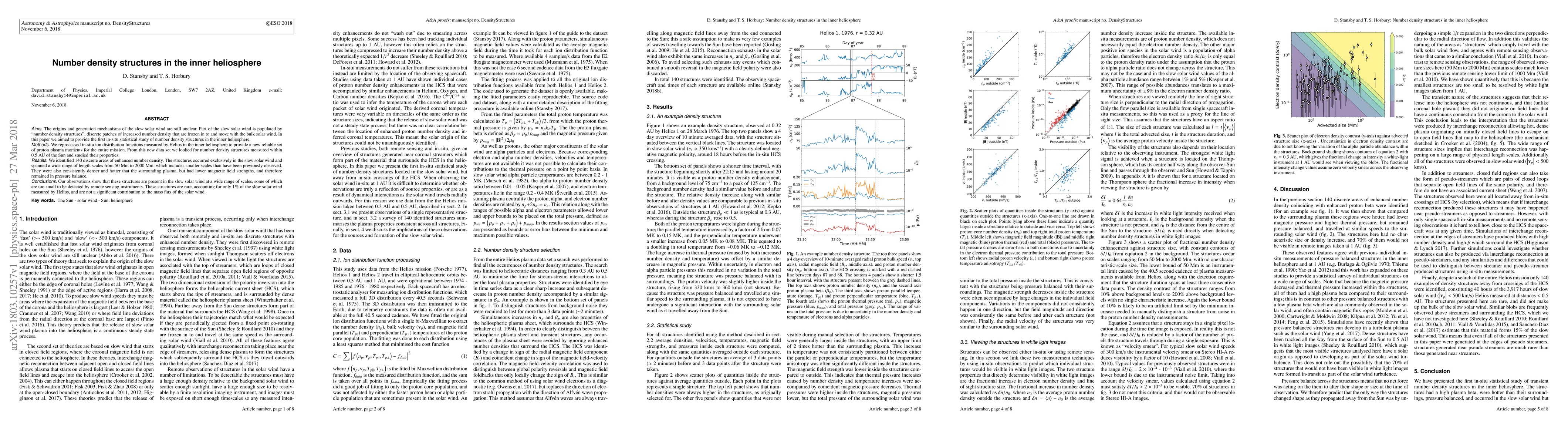 This paper presents a statistical study of "number density structures" in the slow solar wind within 0.5 AU of the Sun, identifying 140 discrete areas of enhanced density that span a wide range of scales, some smaller than previously observed. These structures are denser and hotter but have lower magnetic field strengths, maintaining pressure balance.