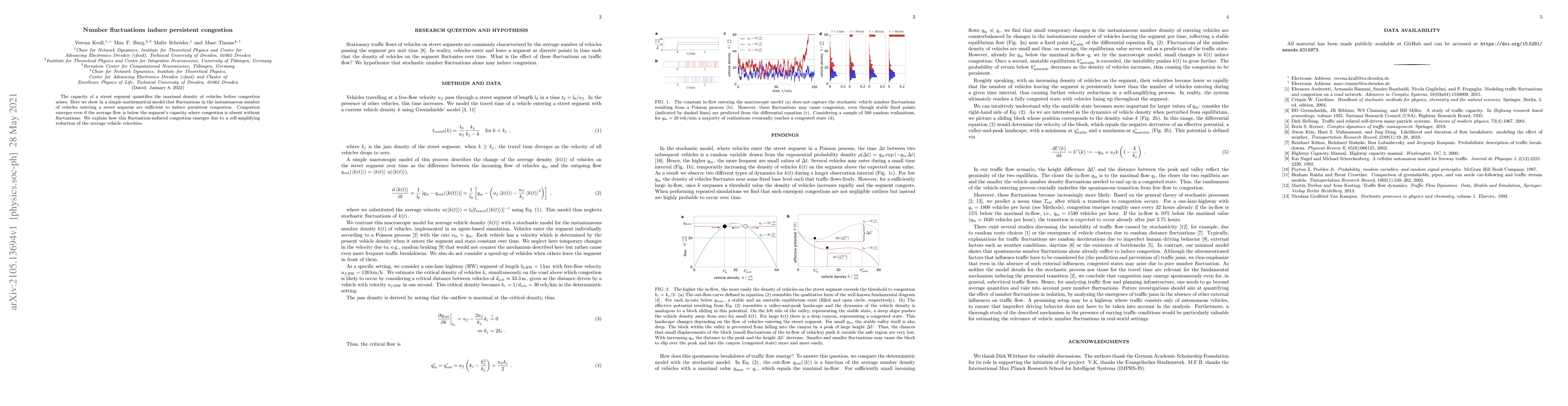 The capacity of a street segment quantifies the maximal density of vehicles before congestion arises. Here we show in a simple mathematical model that fluctuations in the instantaneous number of vehicles entering a street segment are sufficient to induce persistent congestion. Congestion emerges even if the average flow is below the segment's capacity where congestion is absent without fluctuations. We explain how this fluctuation-induced congestion emerges due to a self-amplifying reduction of the average vehicle velocities.