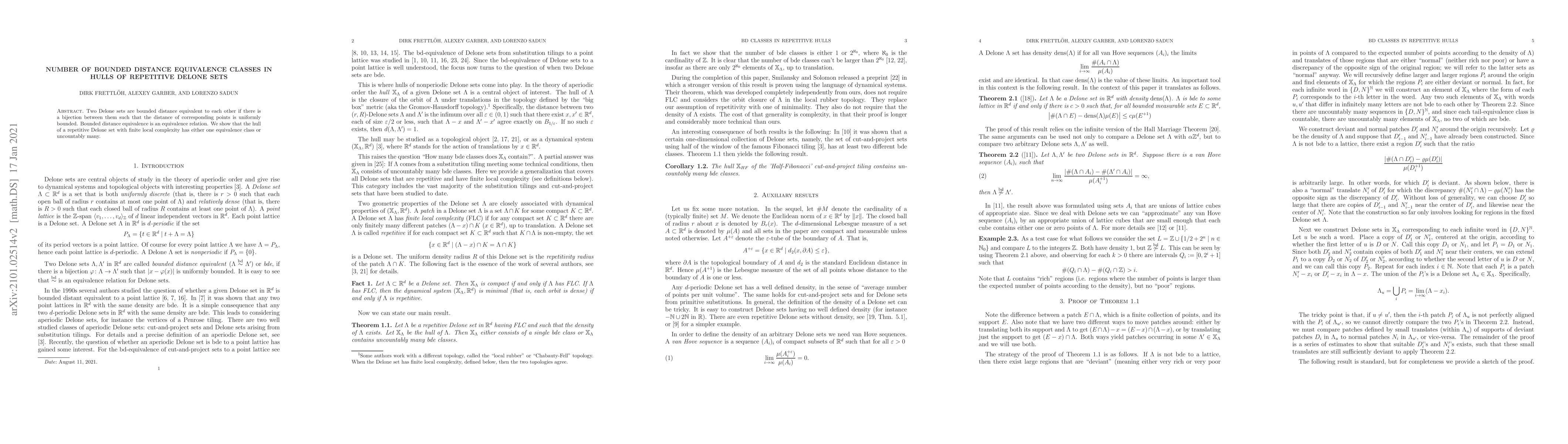 Two Delone sets are bounded distance equivalent to each other if there is a bijection between them such that the distance of corresponding points is uniformly bounded. Bounded distance equivalence is an equivalence relation. We show that the hull of a repetitive Delone set with finite local complexity has either one equivalence class or uncountably many. A very similar result is proven in arXiv:2011.00106 [math.MG].
