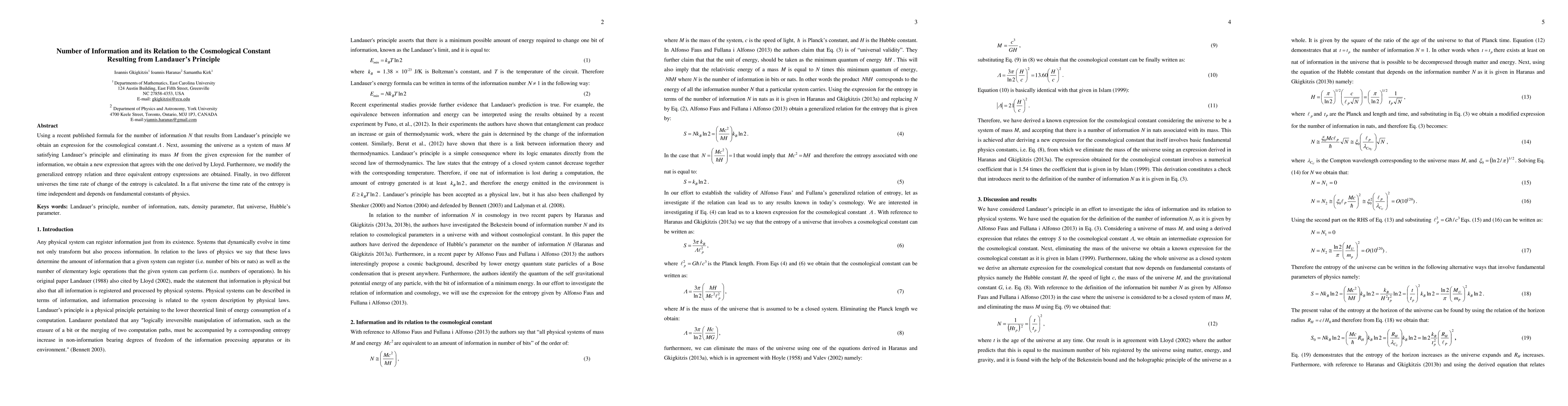 Researchers used Landauer's principle to relate the cosmological constant to the number of information, deriving new expressions for entropy and calculating the time rate of change of entropy in different universes.