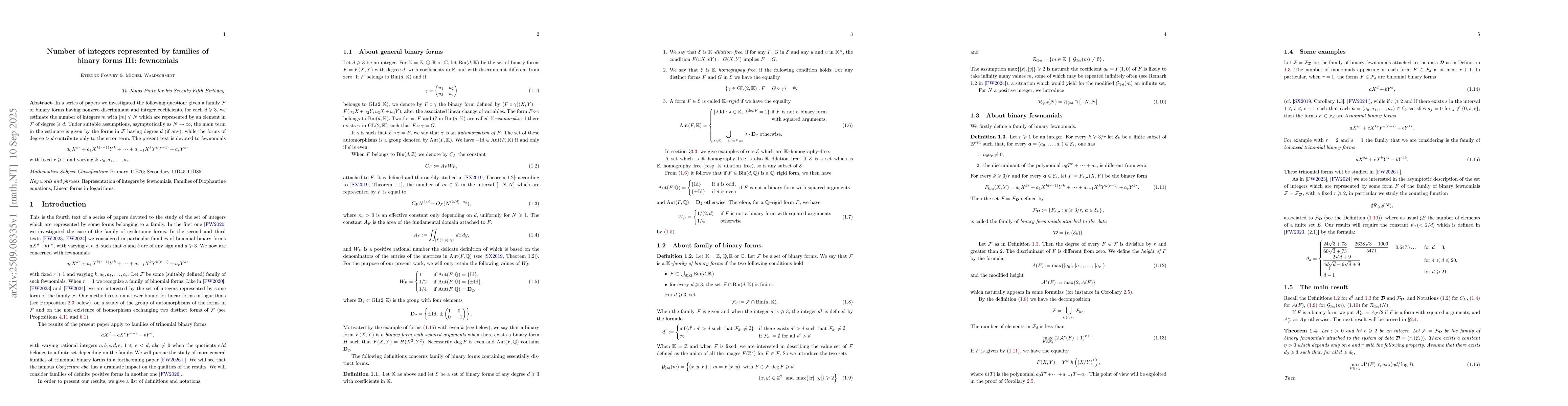 In a series of papers we investigated the following question: given a family $\calF$ of binary forms having nonzero discriminant and integer coefficients, for each $d\geqslant 3$, we estimate the number of integers $m$ with $|m|\leqslant N$ which are represented by an element in $\calF$ of degree $\geqslant d$. Under suitable assumptions, asymptotically as $N\to\infty$, the main term in the estimate is given by the forms in $\calF$ having degree $d$ (if any), while the forms of degree $>d$ contribute only to the error term. The present text is devoted to fewnomials \[ a_0X^{kr}+a_1X^{k(r-1)}Y^k+\cdots +a_{r-1}X^kY^{k(r-1)}+a_rY^{kr} \] with fixed $r\geqslant 1$ and varying $k,a_0,a_1,\dots,a_r$.