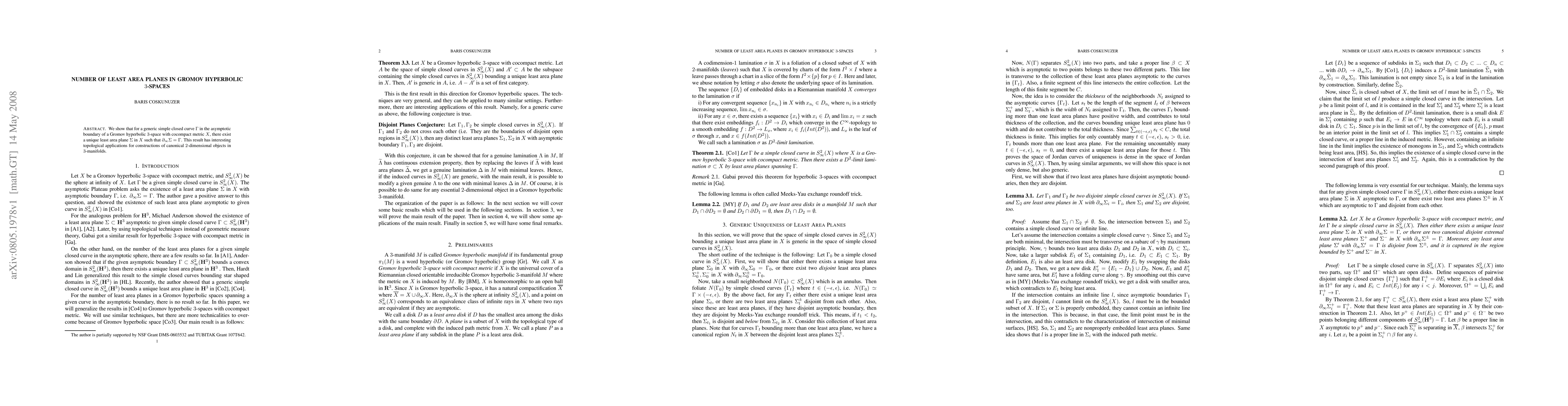 Summary: This paper demonstrates the existence of a unique least area plane in a Gromov hyperbolic 3-space with a cocompact metric, associated with a generic simple closed curve in its asymptotic boundary, with implications for constructing canonical 2-dimensional objects in 3-manifolds.
