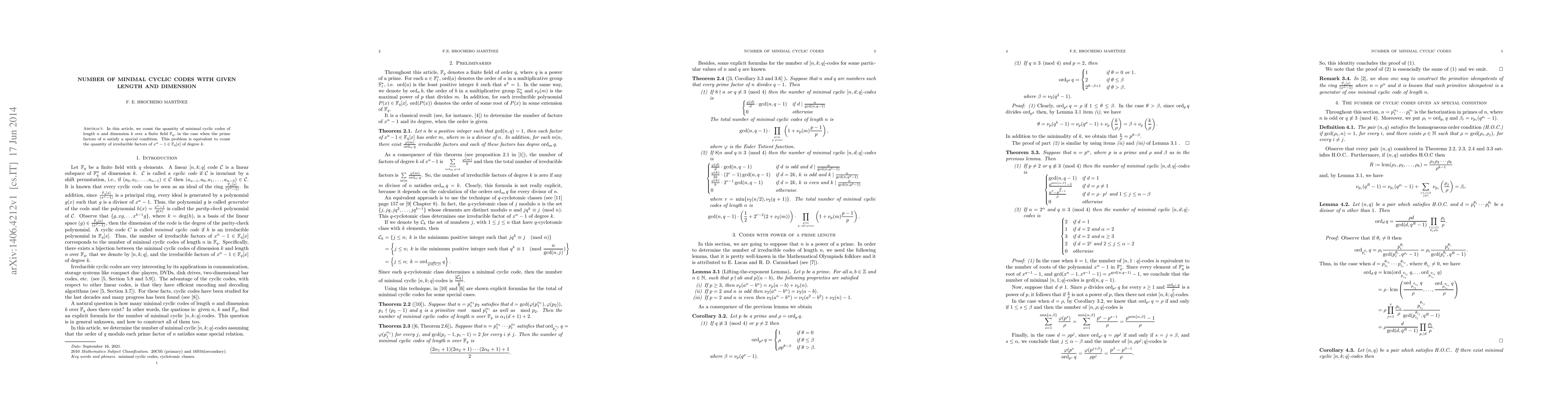 In this article, we count the quantity of minimal cyclic codes of length $n$ and dimension $k$ over a finite field $\mathbb F_q$, in the case when the prime factors of $n$ satisfy a special condition. This problem is equivalent to count the quantity of irreducible factors of $x^n-1\in \mathbb F_q[x]$ of degree $k$.