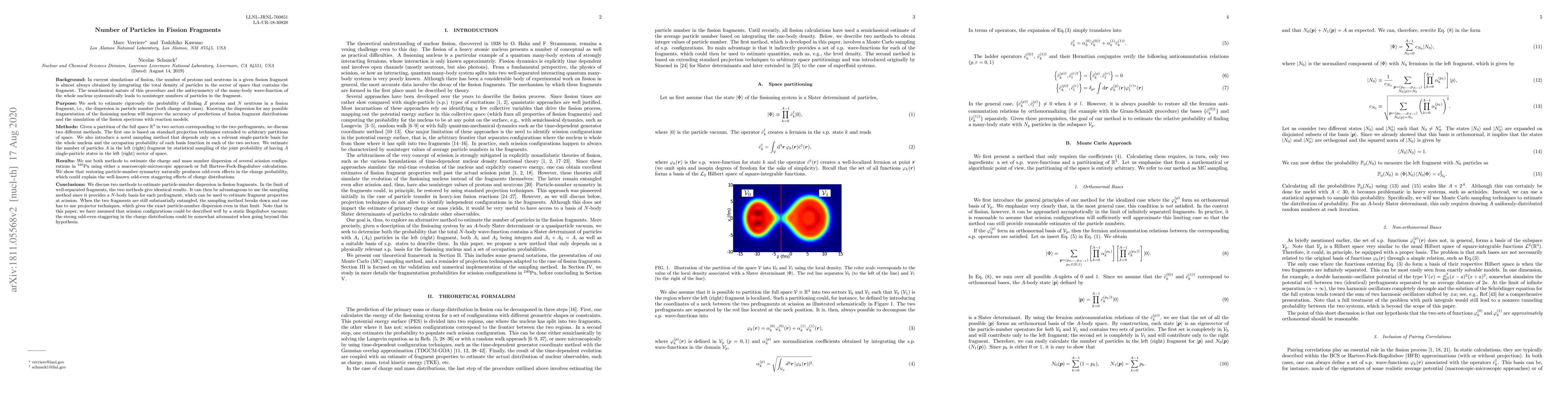 In current simulations of fission, the number of protons and neutrons in a given fission fragment is almost always obtained by integrating the total density of particles in the sector of space that contains the fragment. Because of the antisymmetry of the many-body wave function of the whole nucleus, this procedure systematically gives noninteger numbers of particles in the fragments. We introduce a novel sampling method to estimate rigorously the probability of finding $Z$ protons and $N$ neutrons in a fission fragment without resorting to projectors, which can sometimes give unwieldy results. When applied on standard Hartree-Fock-Bogoliubov many-body states, we show that our approach reproduces indeed the results of full particle-number projection. We then estimate the charge and mass number dispersion of several scission configurations in $^{240}$Pu with and without pairing correlations included. We show that odd-even effects in the charge probability naturally occur within our approach, which could explain the well-known odd-even staggering of charge distributions. Our method is applicable either in static calculations of scission configurations such as, e.g., in the macroscopic-microscopic approach or energy density functional theory, but also in explicitly time-dependent density functional theory simulations of fission.