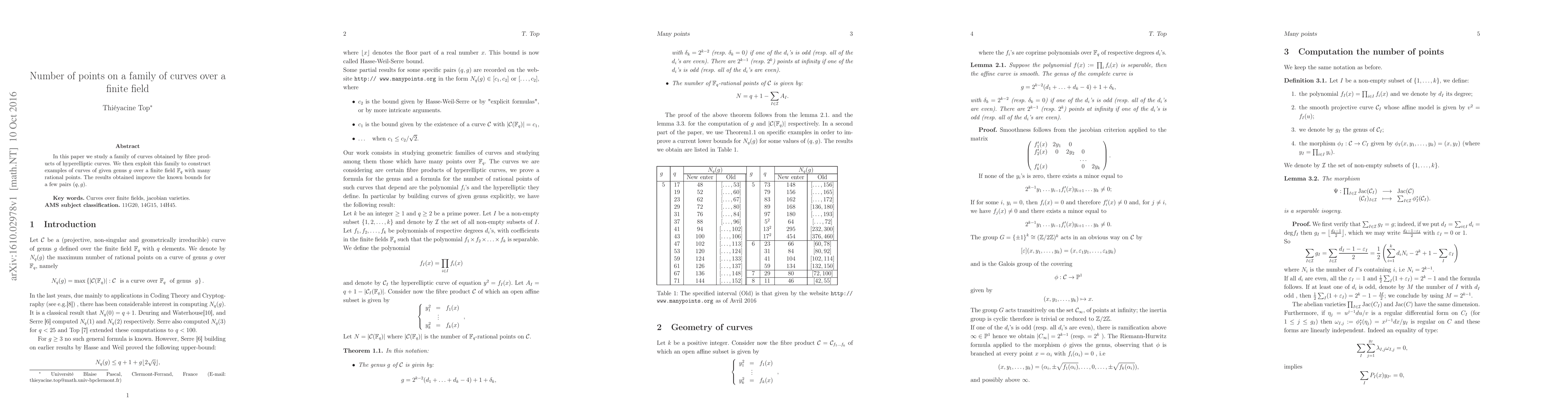 In this paper we study a family of curves obtained by fibre products of hyperelliptic curves. We then exploit this family to construct examples of curves of given genus g over a finite field Fq with many rational points. The results obtained improve the known bounds for a few pairs (q, g).