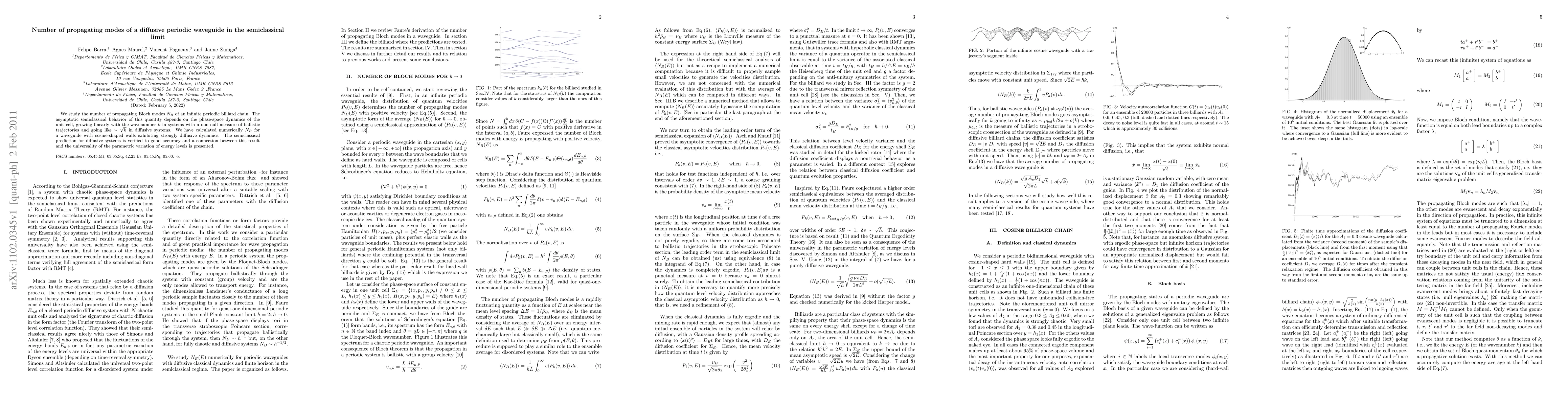 We study the number of propagating Bloch modes N_B of an infinite periodic billiard chain. The asymptotic semiclassical behavior of this quantity depends on the phase-space dynamics of the unit cell, growing linearly with the wavenumber k in systems with a non-null measure of ballistic trajectories and going like ~ sqrt(k) in diffusive systems. We have calculated numerically N_B for a waveguide with cosine-shaped walls exhibiting strongly diffusive dynamics. The semiclassical prediction for diffusive systems is verified to good accuracy and a connection between this result and the universality of the parametric variation of energy levels is presented.