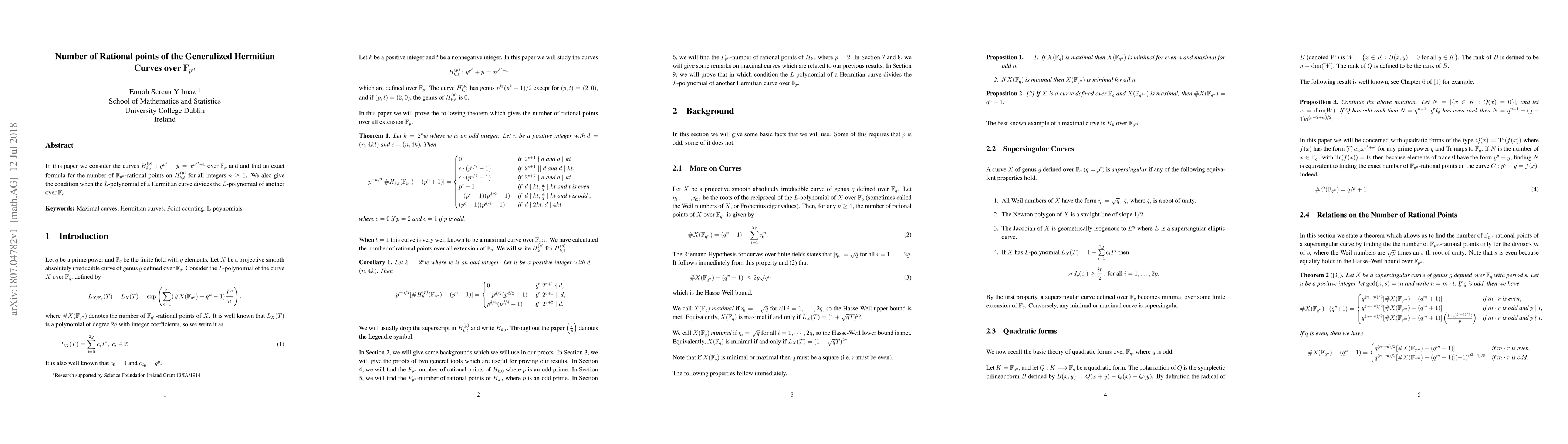 In this paper we consider the curves $H_{k,t}^{(p)} : y^{p^k}+y=x^{p^{kt}+1}$ over $\mathbb F_p$ and and find an exact formula for the number of $\mathbb F_{p^n}$-rational points on $H_{k,t}^{(p)}$ for all integers $n\ge 1$. We also give the condition when the $L$-polynomial of a Hermitian curve divides the $L$-polynomial of another over $\mathbb F_p$.
