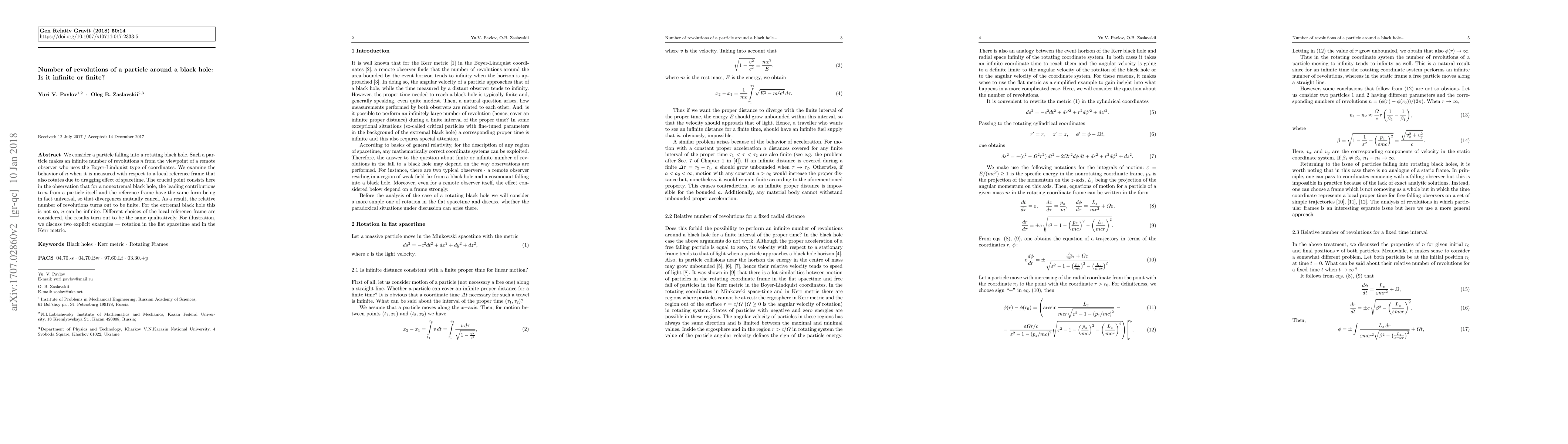 This paper investigates whether a particle falling into a rotating black hole makes an infinite or finite number of revolutions. It concludes that for nonextremal black holes, the number of revolutions is finite due to mutual cancellation of divergences, while for extremal black holes, the number can be infinite.