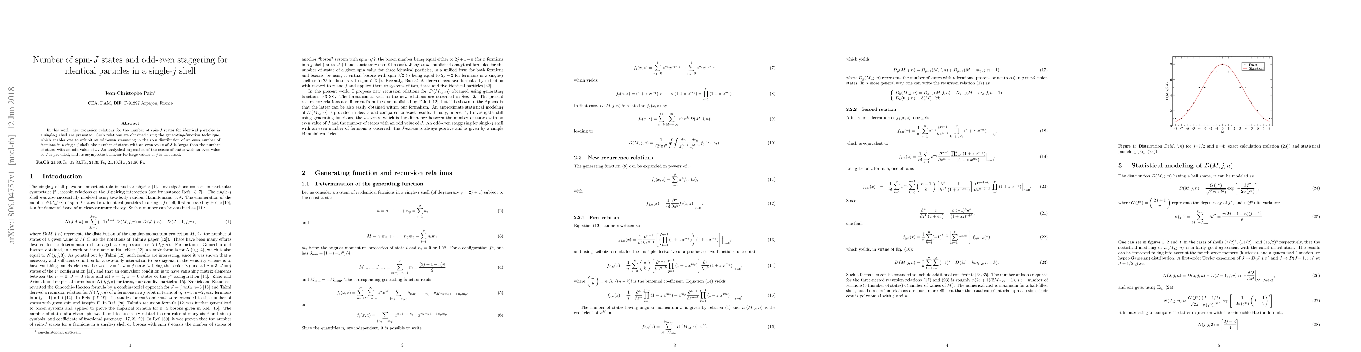 This paper presents new recursion relations for the number of spin-J states in a single-j shell for identical particles, revealing an odd-even staggering where even-J states outnumber odd-J states. An analytical expression for this excess is provided, along with its asymptotic behavior for large j values.