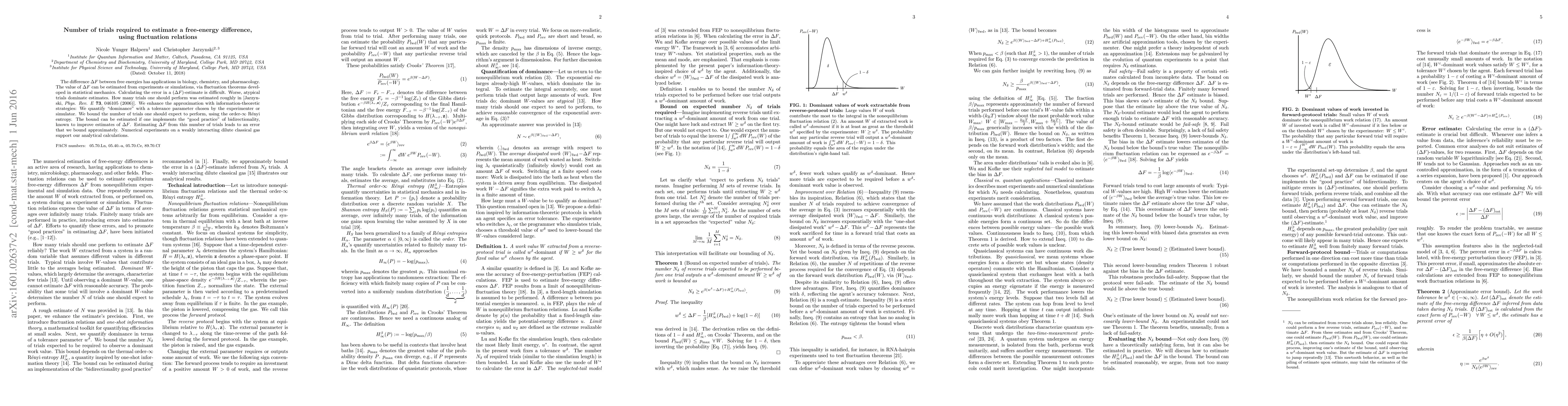 The difference Delta F between free energies has applications in biology, chemistry, and pharmacology. The value of Delta F can be estimated from experiments or simulations, via fluctuation theorems developed in statistical mechanics. Calculating the error in a Delta F estimate is difficult. Worse, atypical trials dominate estimates. How many trials one should perform was estimated roughly in [Jarzynski, Phys. Rev. E 73, 046105 (2006)]. We enhance the approximation with information-theoretic strategies: We quantify "dominance" with a tolerance parameter chosen by the experimenter or simulator. We bound the number of trials one should expect to perform, using the order-infinity Renyi entropy. The bound can be estimated if one implements the "good practice" of bidirectionality, known to improve estimates of Delta F. Estimating Delta F from this number of trials leads to an error that we bound approximately. Numerical experiments on a weakly interacting dilute classical gas support our analytical calculations.