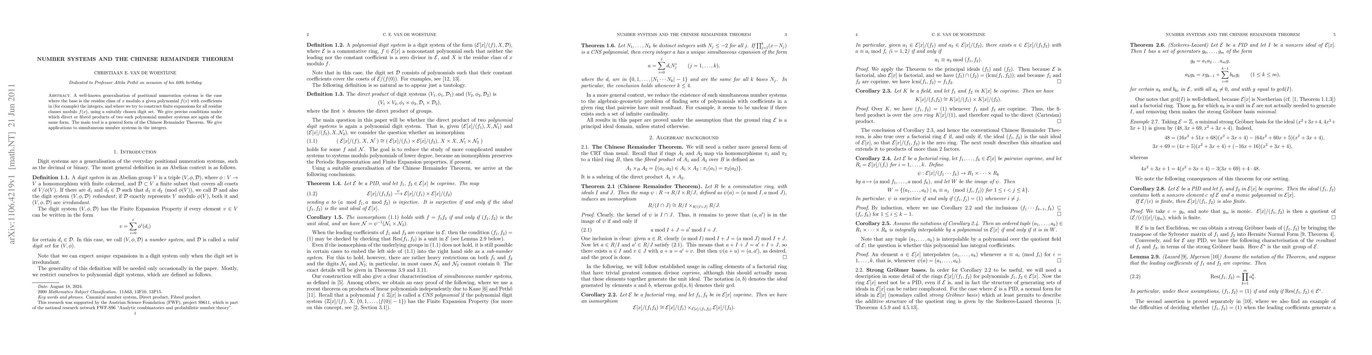 A well-known generalisation of positional numeration systems is the case where the base is the residue class of $x$ modulo a given polynomial $f(x)$ with coefficients in (for example) the integers, and where we try to construct finite expansions for all residue classes modulo $f(x)$, using a suitably chosen digit set. We give precise conditions under which direct or fibred products of two such polynomial number systems are again of the same form. The main tool is a general form of the Chinese Remainder Theorem. We give applications to simultaneous number systems in the integers.