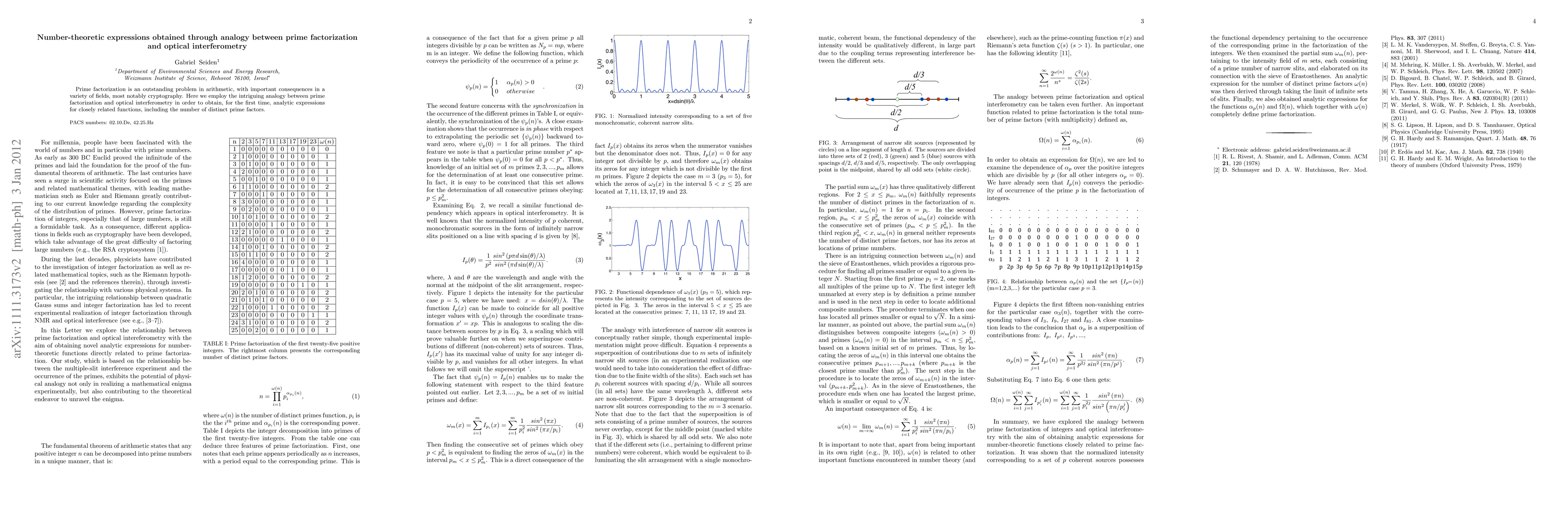 Prime factorization is an outstanding problem in arithmetic, with important consequences in a variety of fields, most notably cryptography. Here we employ the intriguing analogy between prime factorization and optical interferometry in order to obtain, for the first time, analytic expressions for closely related functions, including the number of distinct prime factors.
