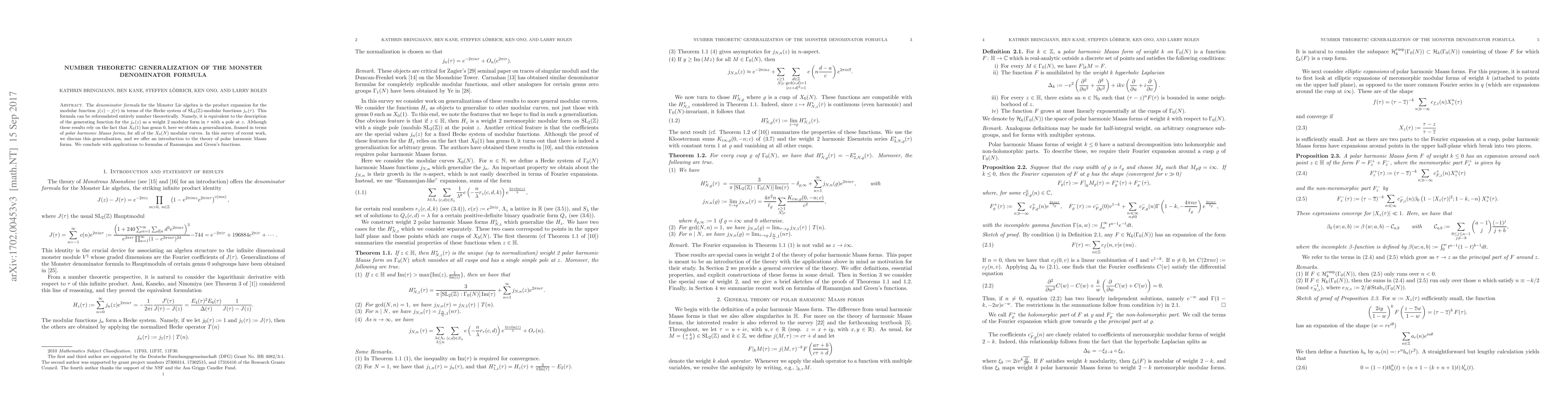 This paper generalizes the Monster denominator formula from the Monster Lie algebra to modular curves $X_0(N)$, framing it in terms of polar harmonic Maass forms, and discusses applications to Ramanujan's formulas and Green's functions. The survey introduces the theory of polar harmonic Maass forms and their relevance to number theory.