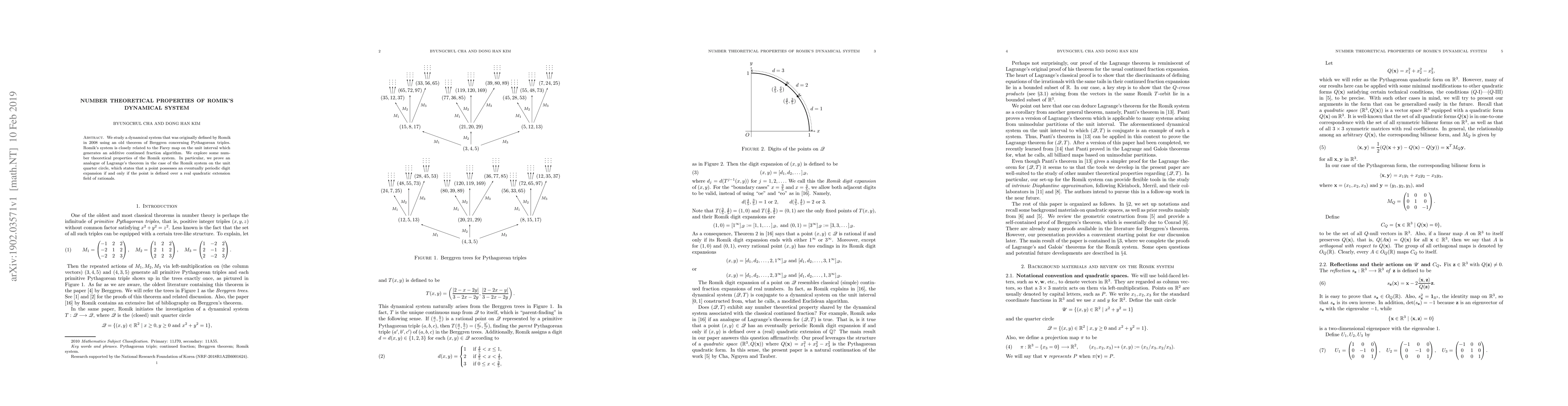 We study a dynamical system that was originally defined by Romik in 2008 using an old theorem of Berggren concerning Pythagorean triples. Romik's system is closely related to the Farey map on the unit interval which generates an additive continued fraction algorithm. We explore some number theoretical properties of the Romik system. In particular, we prove an analogue of Lagrange's theorem in the case of the Romik system on the unit quarter circle, which states that a point possesses an eventually periodic digit expansion if and only if the point is defined over a real quadratic extension field of rationals.