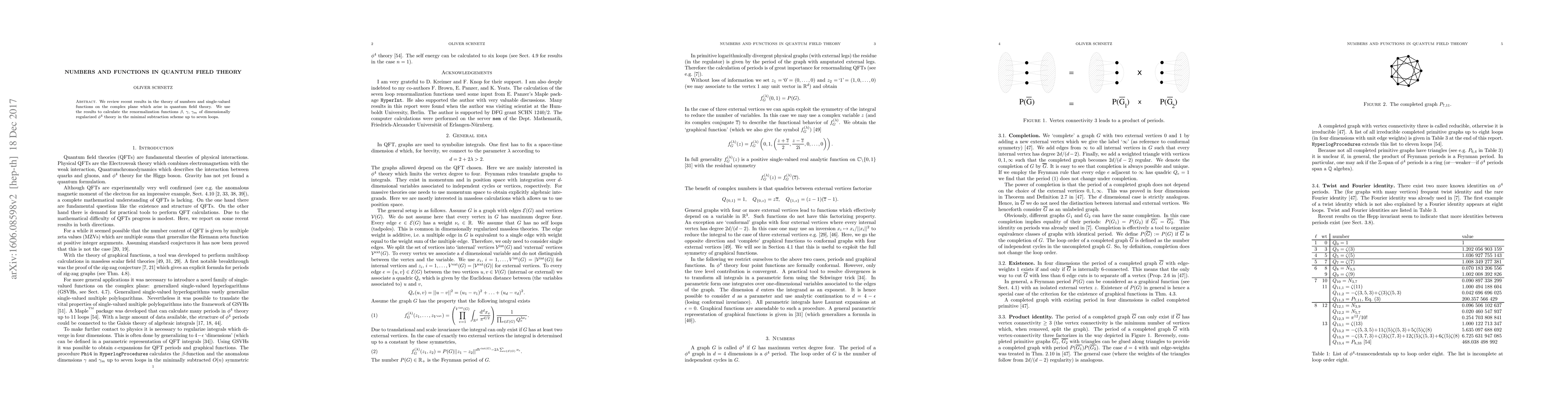 This paper reviews recent results on numbers and functions in quantum field theory, then uses these results to calculate renormalization functions for a specific theoretical framework up to seven loops.