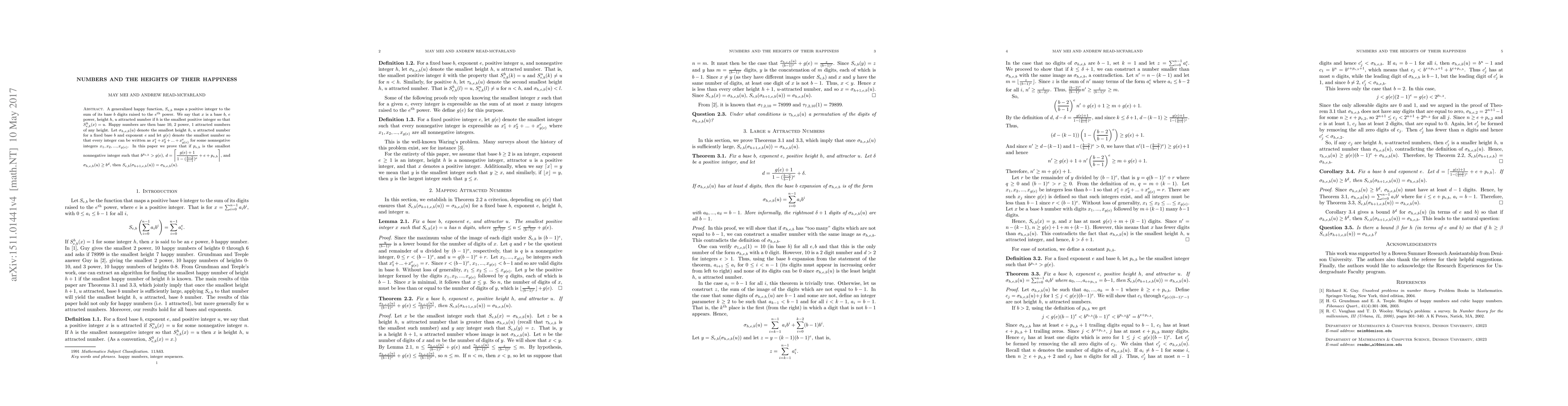 This paper explores generalized happy functions $S_{e,b}$ and defines $u$ attracted numbers based on base $b$ and exponent $e$. It proves a condition under which $S_{e,b}(\sigma_{h+1,e,b}(u))=\sigma_{h,e,b}(u)$ holds true, involving the smallest nonnegative integer $p_{e,b}$ and a derived value $d$.