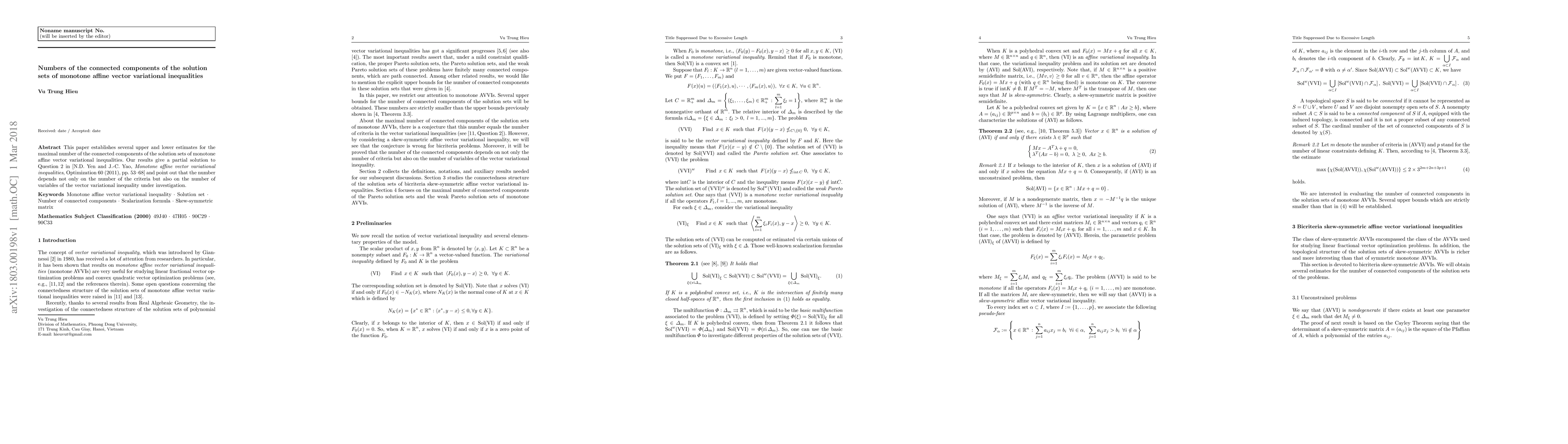 This paper provides upper and lower bounds for the maximal number of connected components in the solution sets of monotone affine vector variational inequalities, contributing to the understanding of how these components relate to the number of criteria and variables involved. The findings address Question 2 from a prior study and highlight the dependency of solution set connectivity on both criteria and variables.