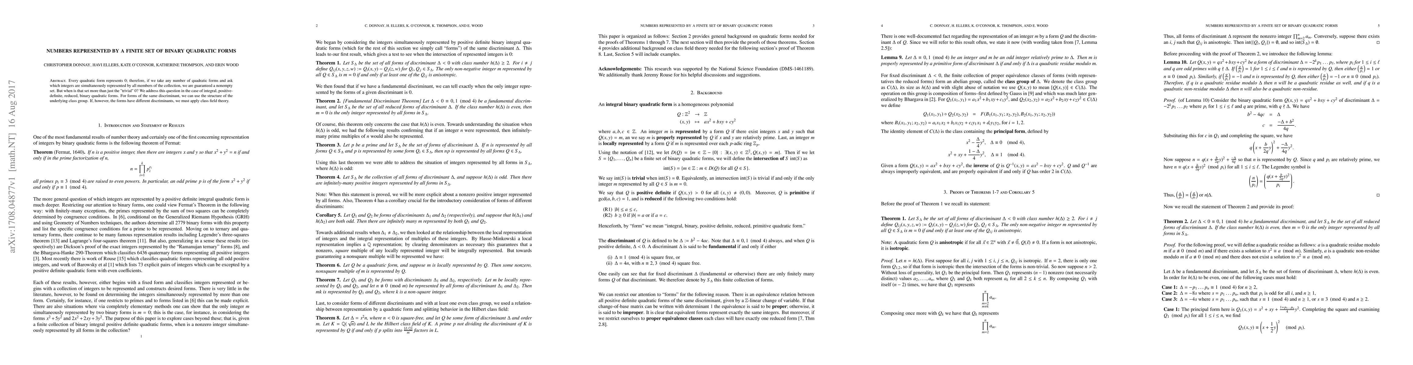 This paper explores which integers are represented by a finite set of binary quadratic forms, focusing on non-trivial representations beyond just zero. It utilizes the class group structure for forms of the same discriminant and class field theory for forms with different discriminants.