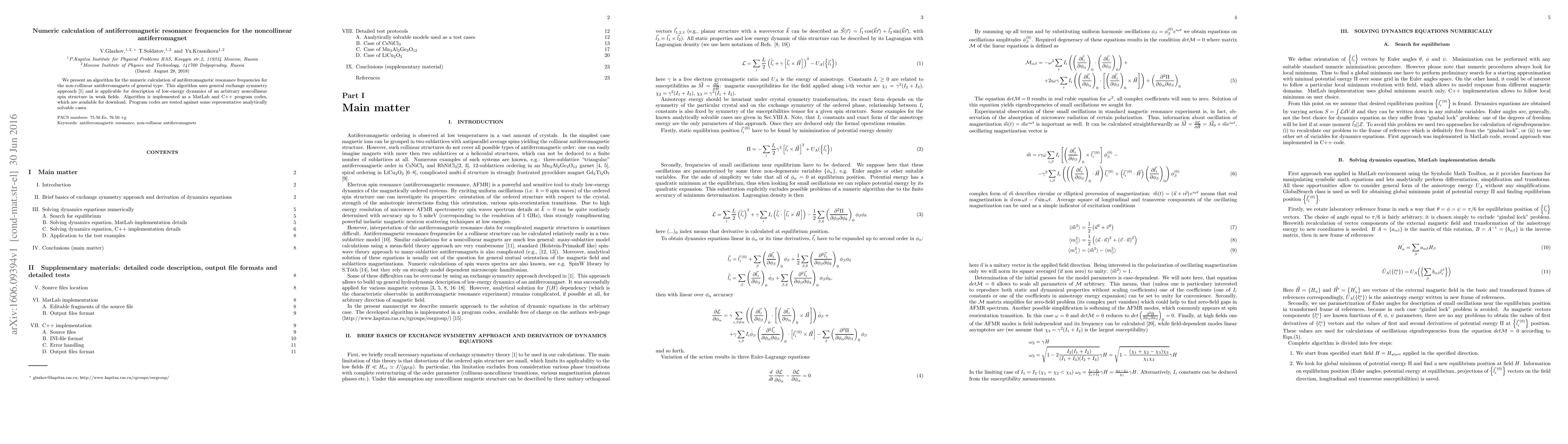 The paper introduces a numerical algorithm for calculating antiferromagnetic resonance frequencies in noncollinear antiferromagnets, utilizing an exchange symmetry approach. The method is validated through comparison with analytically solvable cases, and MatLab, C++ program codes are provided for download.