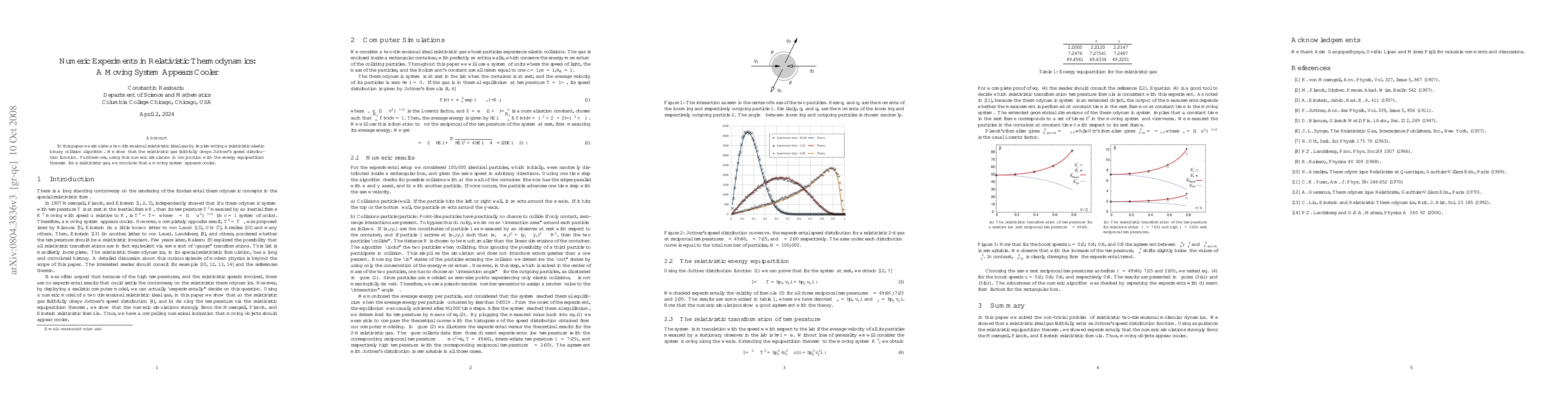 In this paper we simulate a two dimensional relativistic ideal gas by implementing a relativistic elastic binary collision algorithm. We show that the relativistic gas faithfully obeys J\"uttner's speed distribution function. Furthermore, using this numeric simulation in conjunction with the energy equipartition theorem for a relativistic gas, we conclude that a moving system appears cooler.