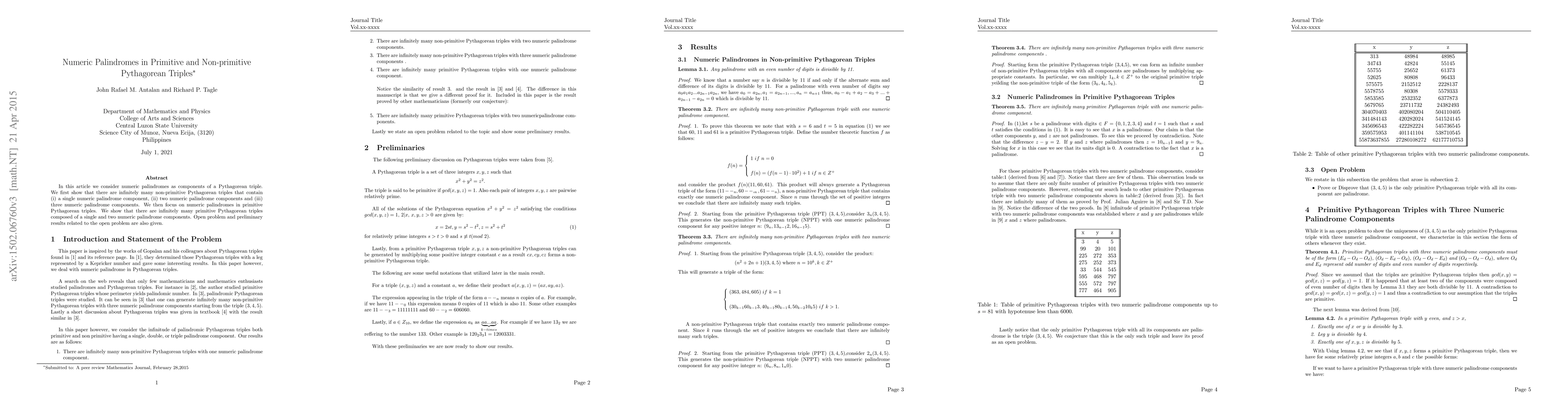 This paper explores numeric palindromes within Pythagorean triples, demonstrating the existence of infinitely many non-primitive triples with one, two, or three palindromic components. It also investigates primitive Pythagorean triples containing numeric palindromes, concluding with an open problem in the field.