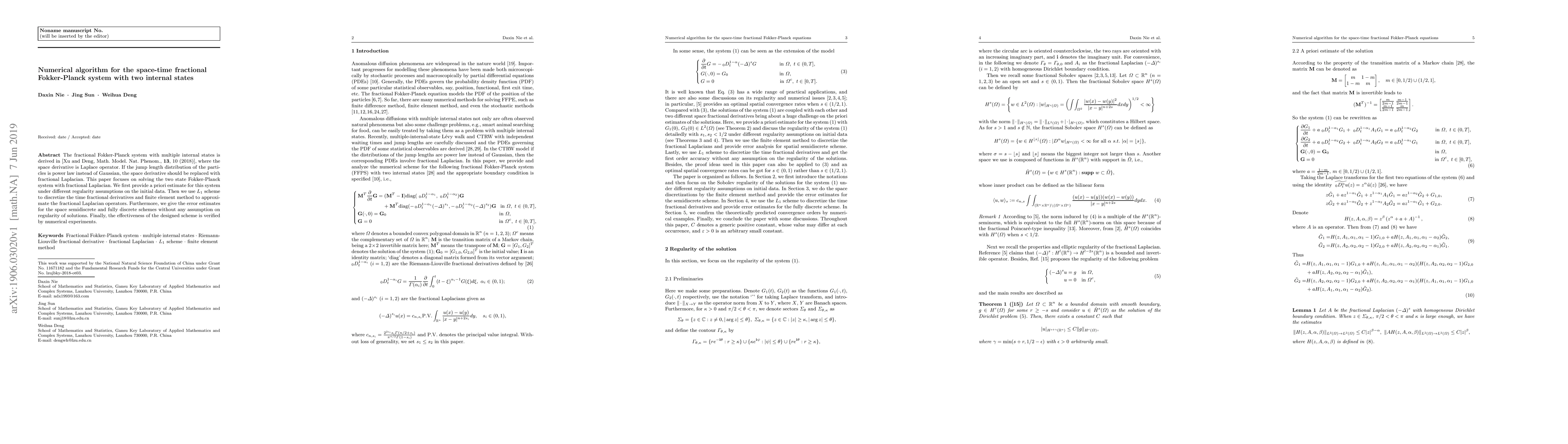 This paper develops a numerical algorithm for solving the space-time fractional Fokker-Planck system with two internal states, replacing the standard Laplace operator with a fractional Laplacian. It provides error estimates for both semidiscrete and fully discrete schemes and validates the method through numerical experiments.