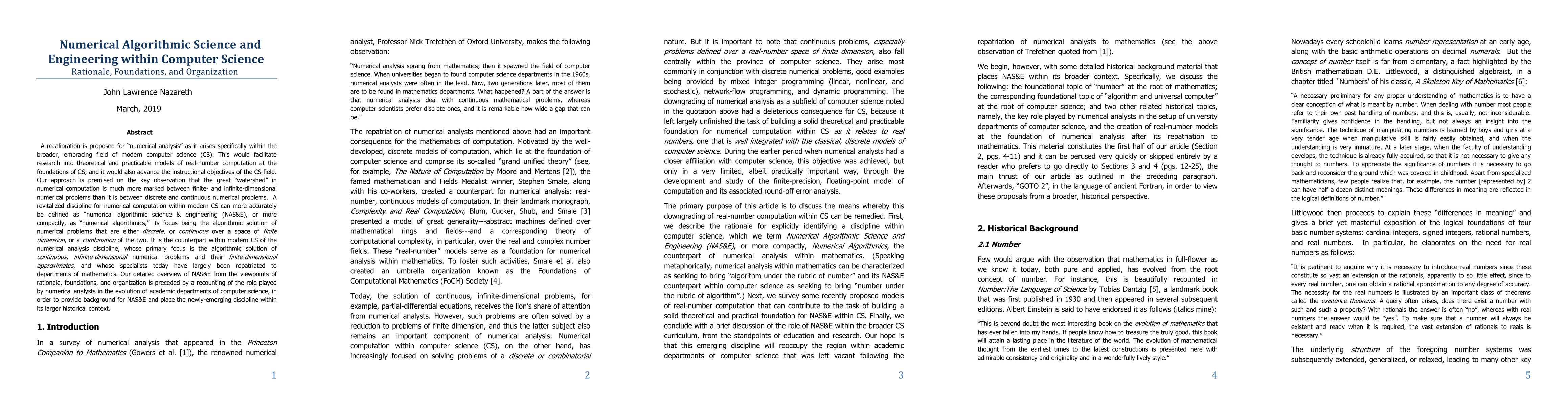This paper proposes re-defining "numerical analysis" within computer science as "numerical algorithmic science & engineering (NAS&E)," focusing on finite-dimensional numerical problems. It aims to advance both theoretical and practical models of real-number computation and improve CS education by emphasizing the distinction between finite- and infinite-dimensional numerical problems.