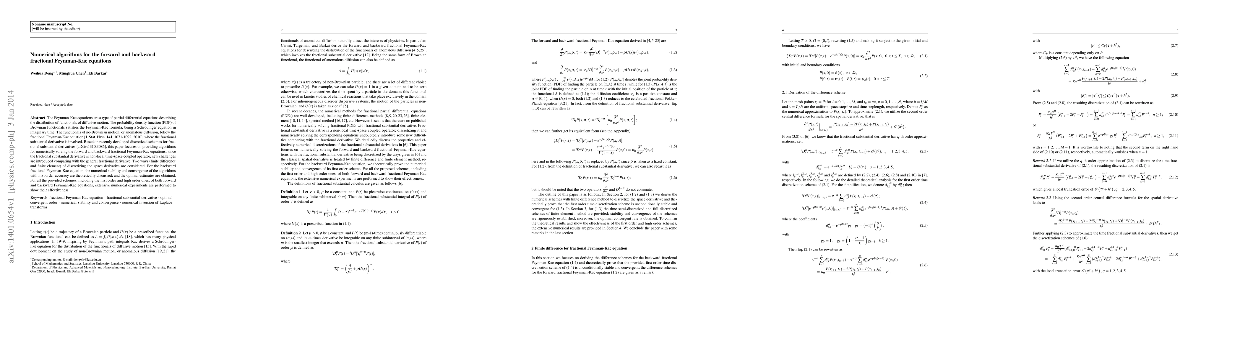 This paper develops numerical algorithms for solving forward and backward fractional Feynman-Kac equations, focusing on fractional substantial derivatives. It employs finite difference and finite element methods for discretization, analyzes stability and convergence for backward equations, and presents extensive numerical experiments to validate the effectiveness of the proposed schemes.