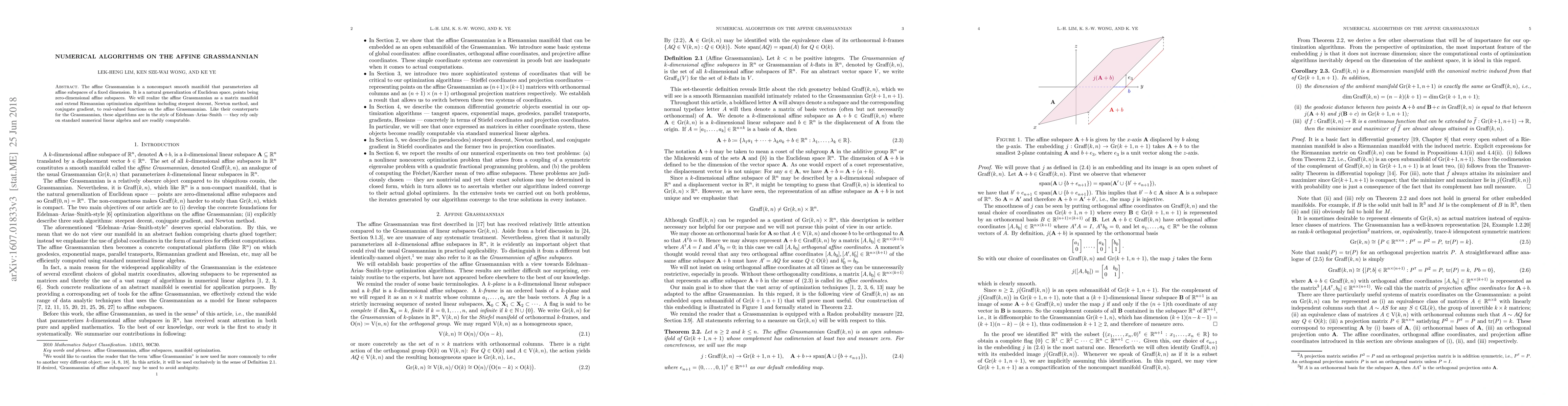 The paper develops numerical algorithms for Riemannian optimization on the affine Grassmannian, extending methods like steepest descent and Newton's method, using standard numerical linear algebra techniques. These algorithms are designed for real-valued functions defined on the affine Grassmannian, which generalizes Euclidean space.