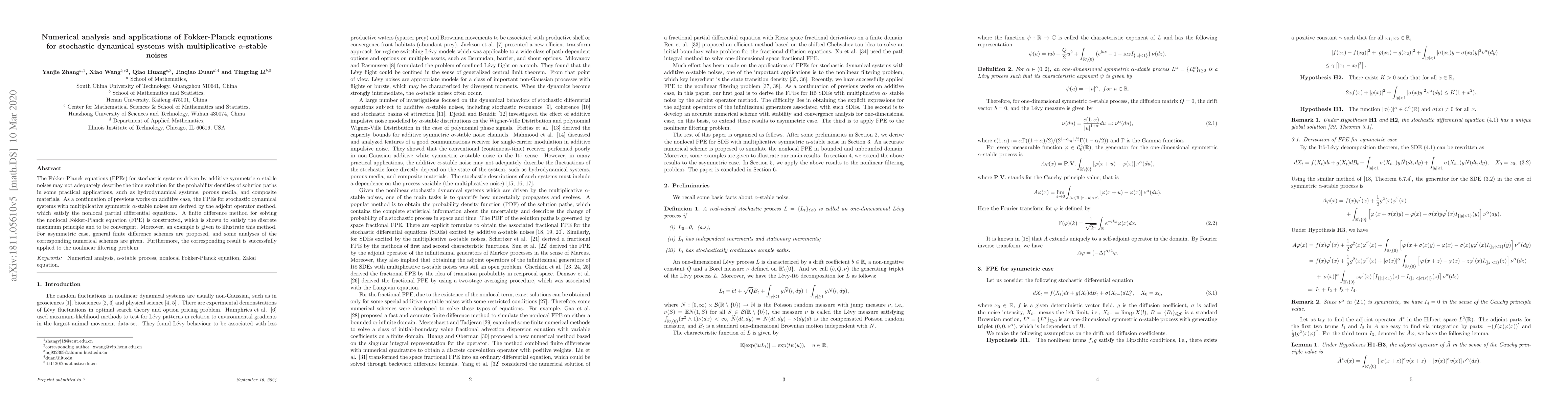 The paper presents a novel approach for deriving FPEs with multiplicative $\alpha$-stable noises and a robust finite difference method for solving these equations, ensuring stability and convergence.