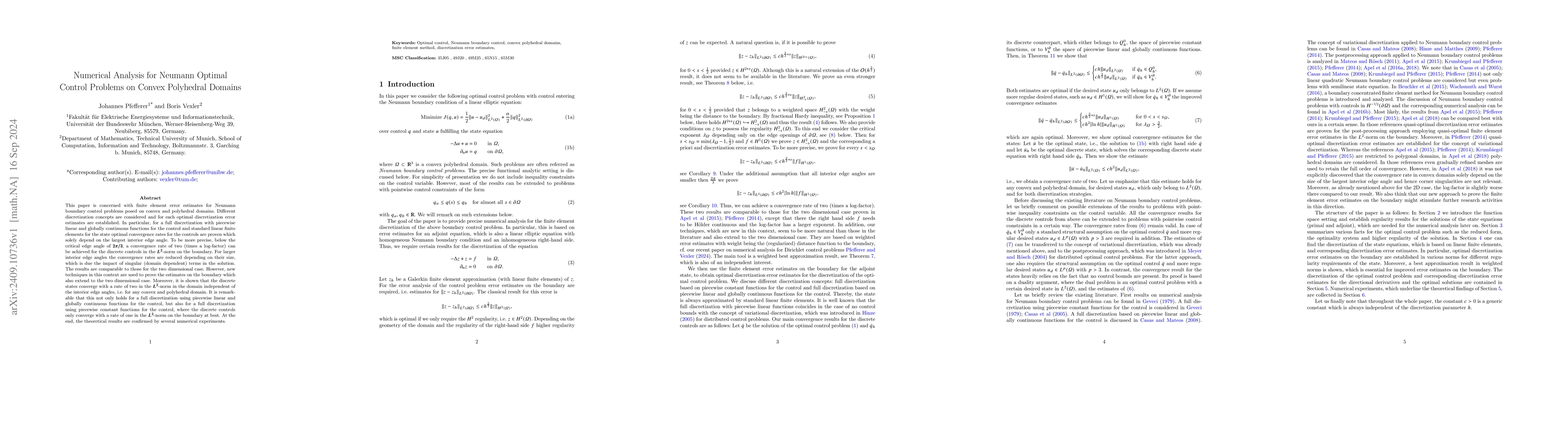 This paper provides finite element error estimates for Neumann boundary control problems on convex polyhedral domains, proving optimal convergence rates for controls that depend on the largest interior edge angle. For edge angles below $2\pi/3$, a convergence rate of two (with a log-factor) is achievable, while larger angles reduce convergence rates due to singular terms; theoretical results are validated through numerical experiments.