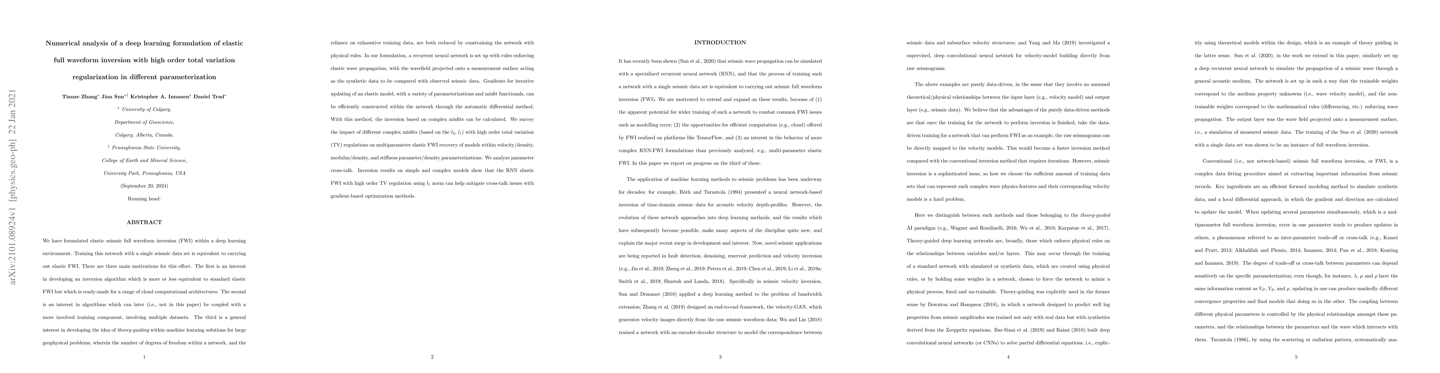 This paper formulates elastic full waveform inversion within a deep learning framework using a recurrent neural network to enforce elastic wave propagation. The study investigates the impact of different complex misfits and high order total variation regularization on inversion results, showing that l1 norm with high order TV regulation can mitigate cross-talk issues effectively.