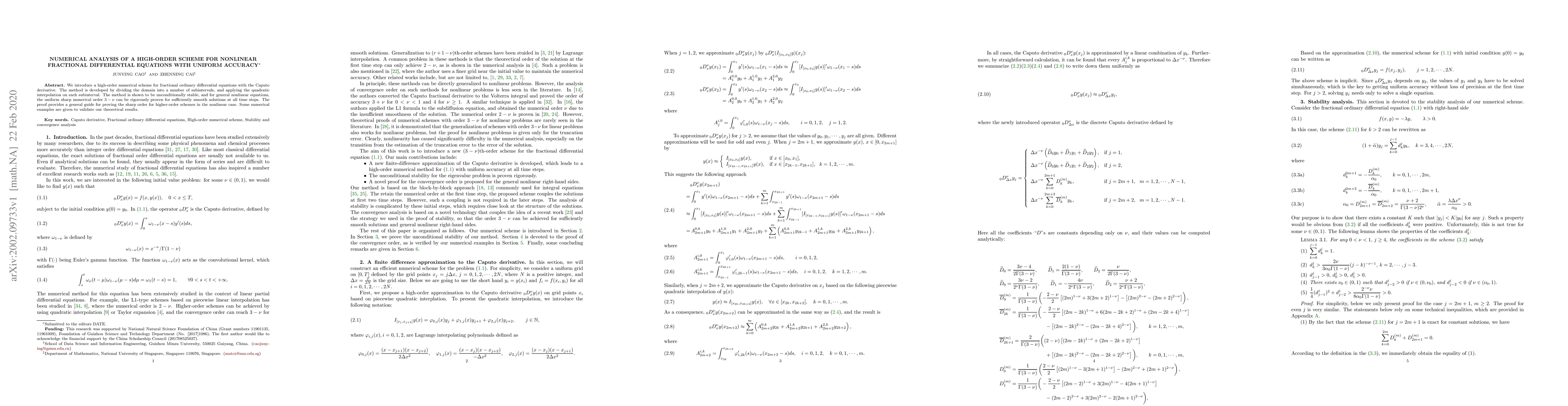 A high-order numerical scheme is introduced for solving nonlinear fractional differential equations with uniform accuracy, demonstrating unconditional stability and a uniform sharp numerical order of $3- u$.